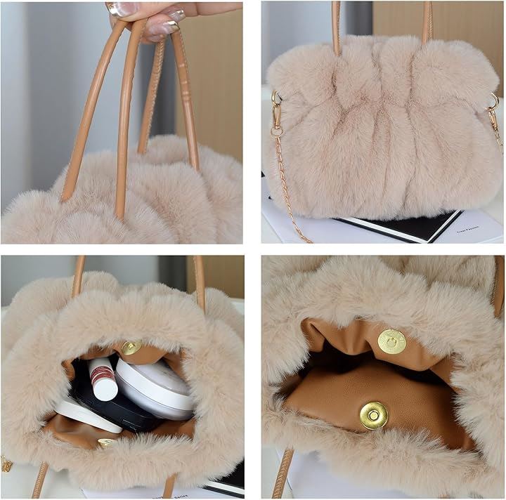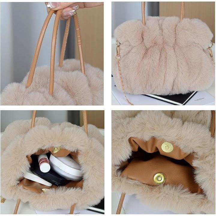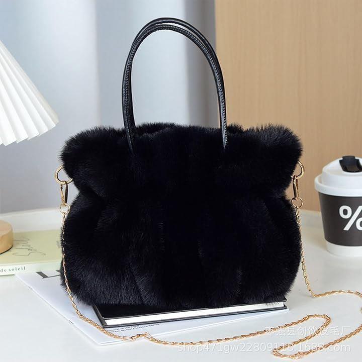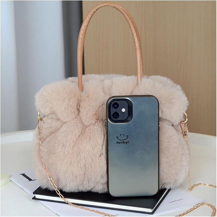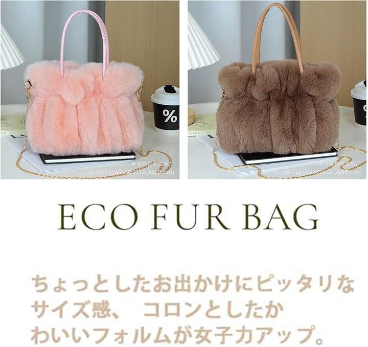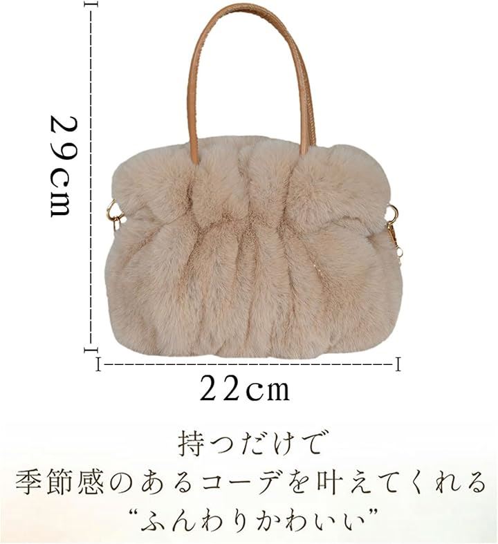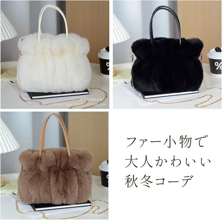 フェイクファー バッグ ハンドバッグ ショルダーバッグ 2WAY ふわふわ もこもこ 可愛い コンパクト ゴールドチェーン 韓国 カジュアル 大人 6カラー エコ かばん 鞄 モコモコ