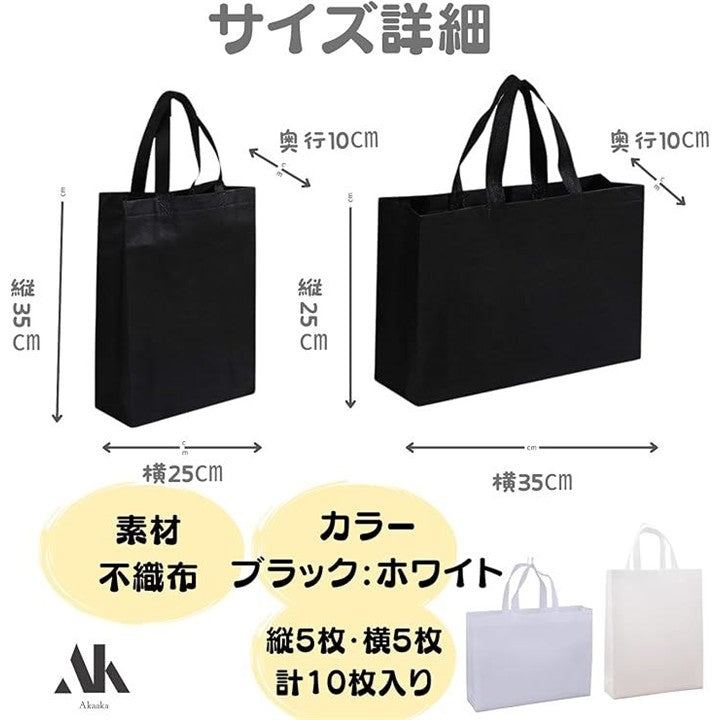 不織布バッグ 手提げ袋 大 収納 トート 特大 マチ 買い物袋 横長 エコバッグ 10枚 A4