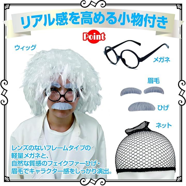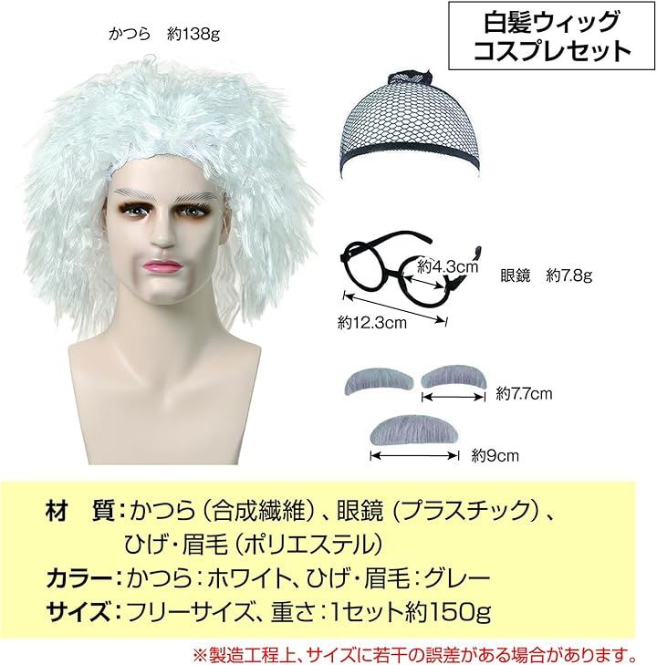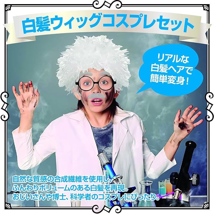 白髪ウィッグ おじいさん かつら 博士 科学者 コスプレ 仮装 ハロウィンコスプレ