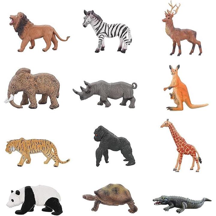 動物 フィギュアセット 12個 野生動物 模型 子供用 おもちゃ 収納ボックス付き DIY