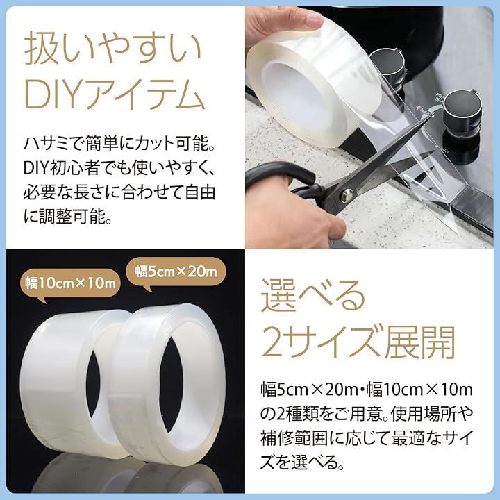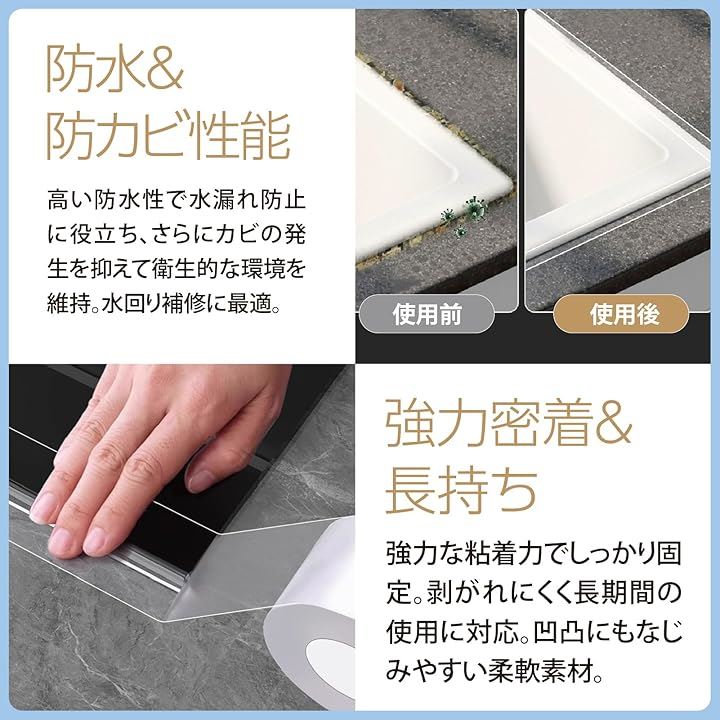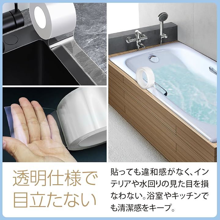 防水テープ 透明 補修テープ 幅広 強粘着 防カビ 汚れ防止 浴槽 キッチン 配管