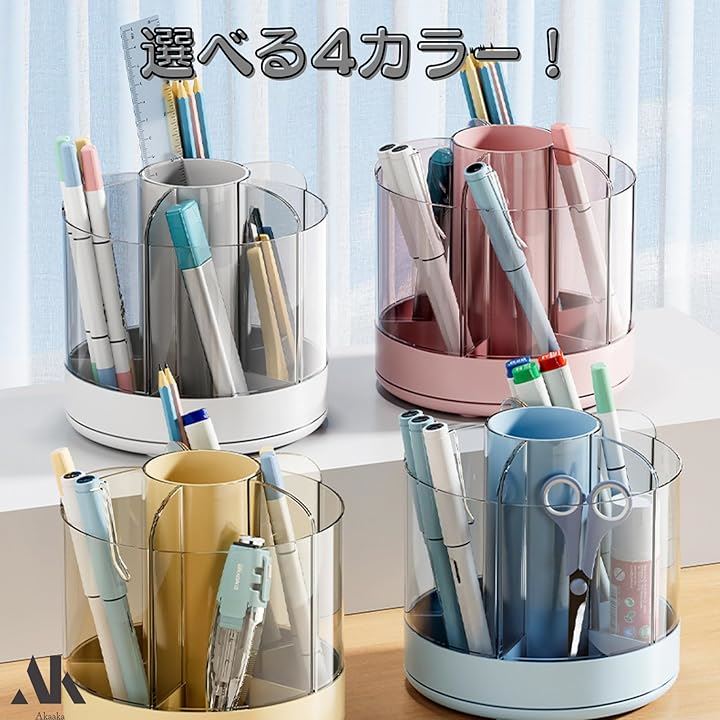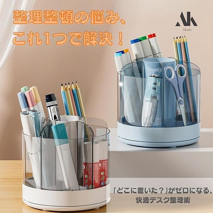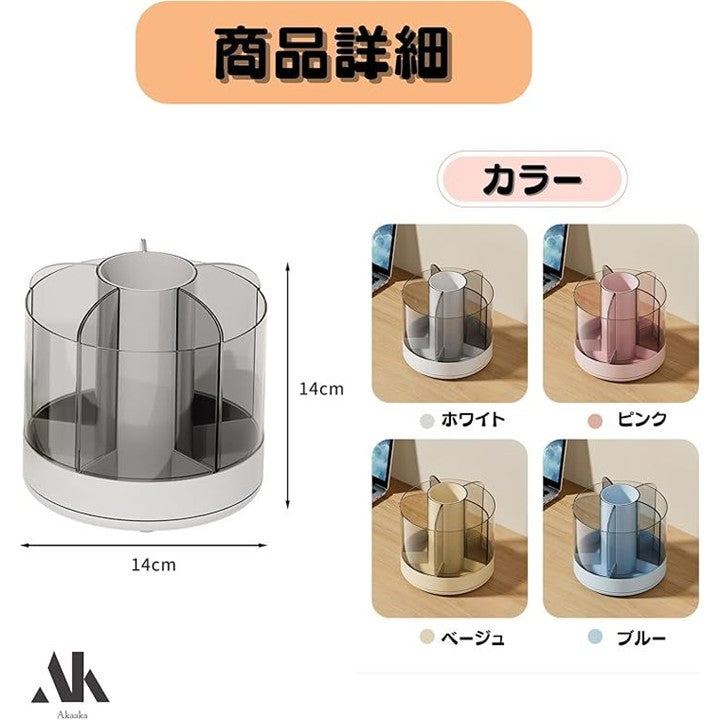 ペン立て 360度回転 鉛筆立て ペンスタンド 大容量 分類収納 小物整理 多機能 卓上収納 オフィス 化粧品 化粧ブラシ コスメ 省スペース