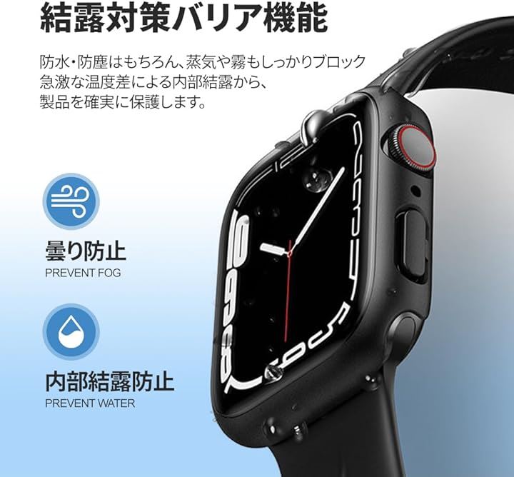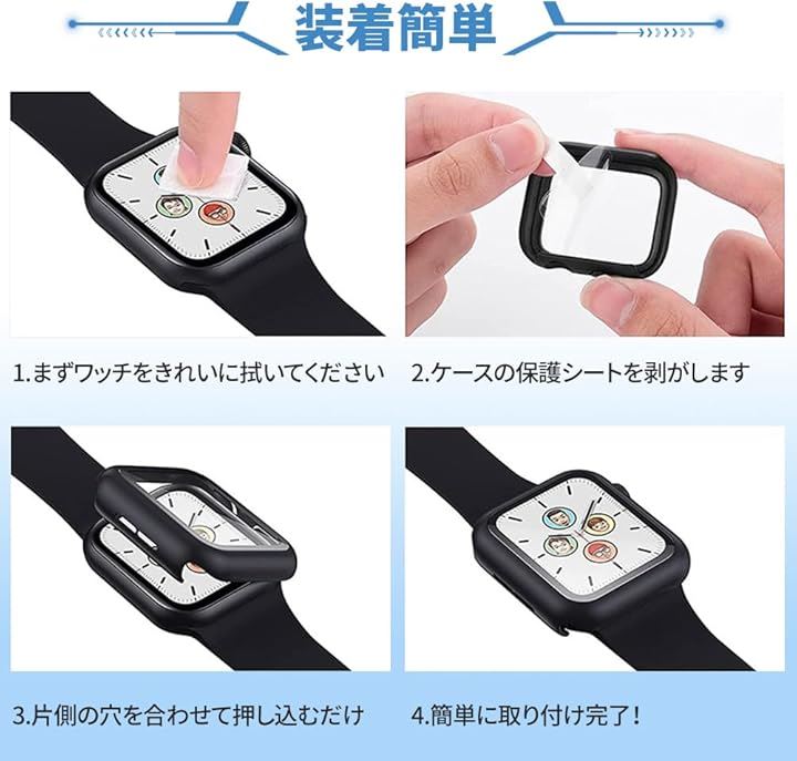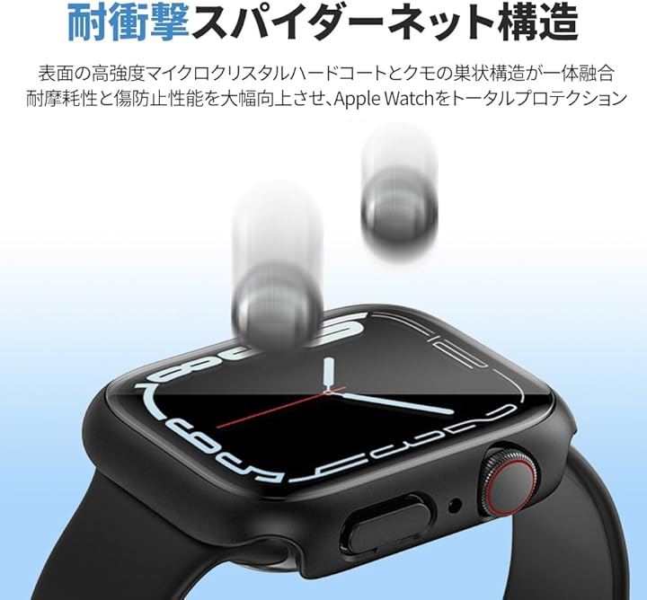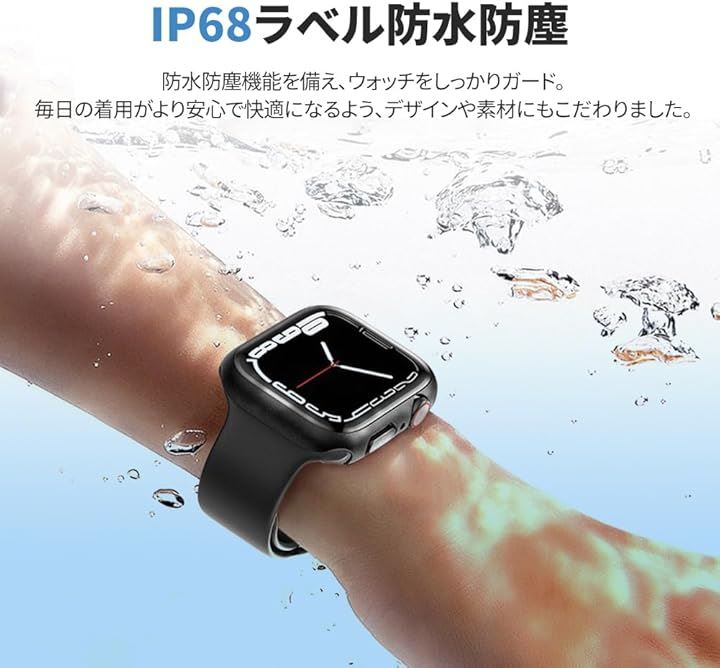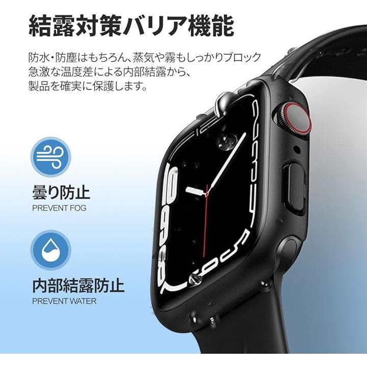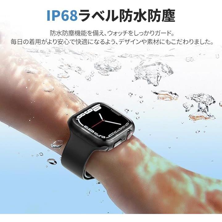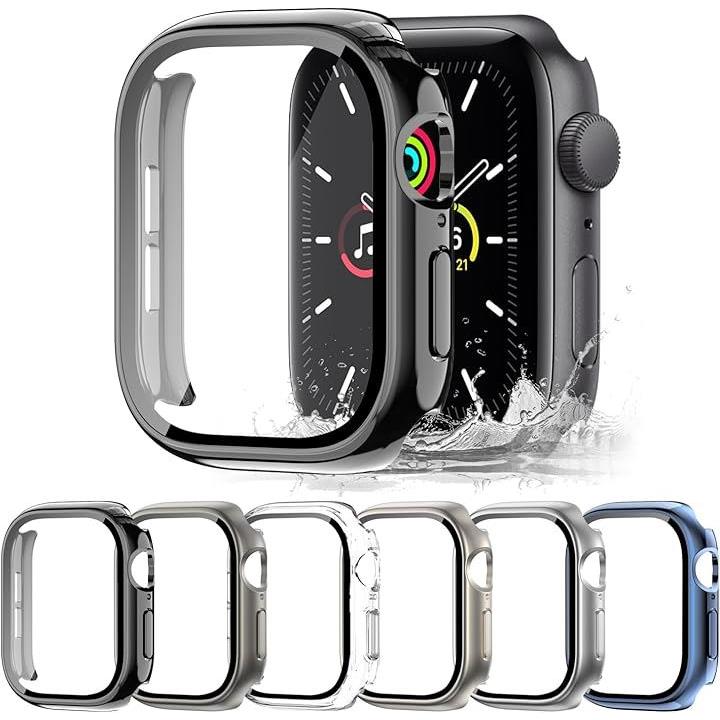 apple watch対応 カバー series 10/9/8/7/SE/6/5/4用 46mm/45mm/44mm ケース アップルウォッチ 用カバー 装着簡単 IP68防水 一体型 PC+ガラス素材 耐衝撃・9H硬度