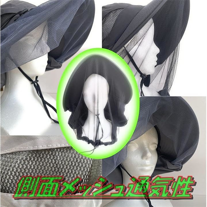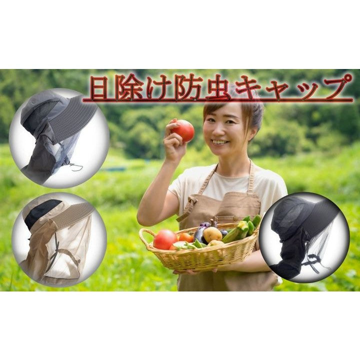 日除け 帽子 虫除け ネット 付 ドローコード 調整 つば広 UV 紫外線 対策 農作業 ガーデニング