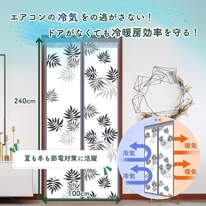 間仕切りカーテン 幅100cmx高さ240cm 冷暖房効率アップ マグネット式 自動開閉 ドアなし空間に最適 半透明 EVA素材 防寒 断熱 防風 防水