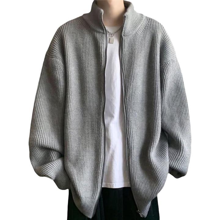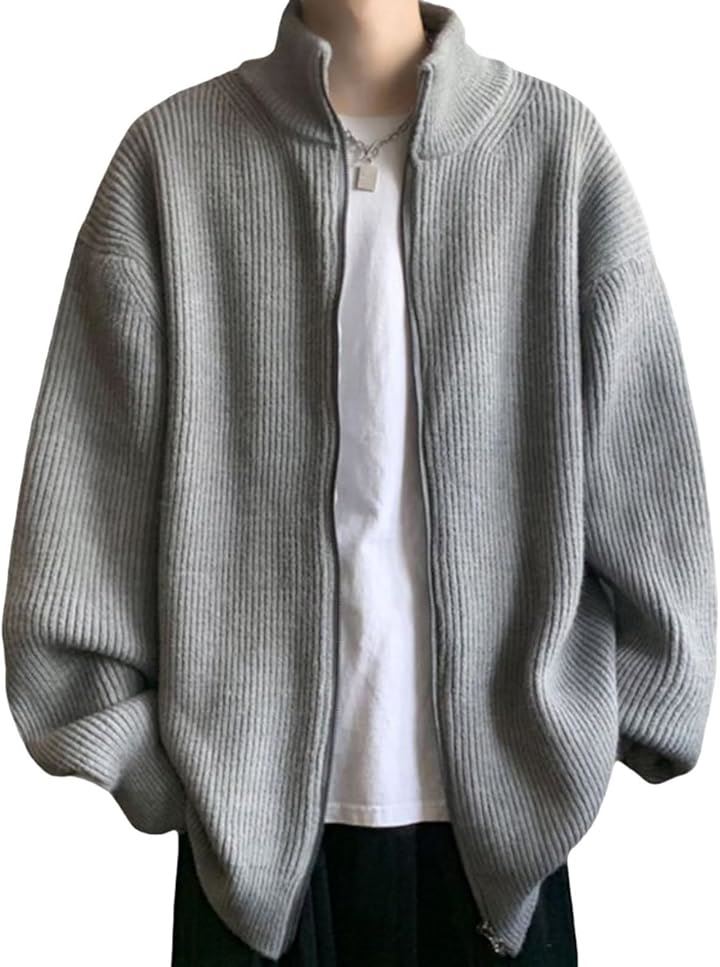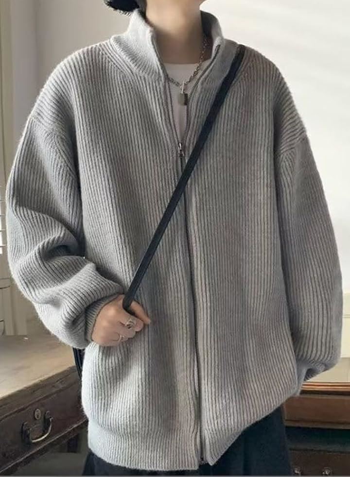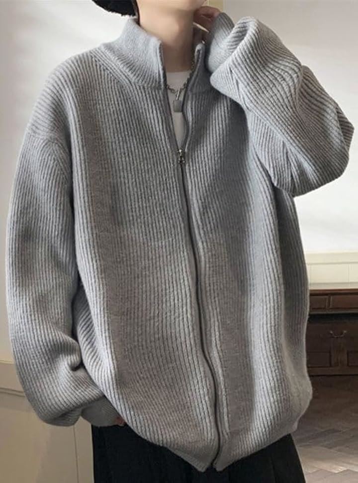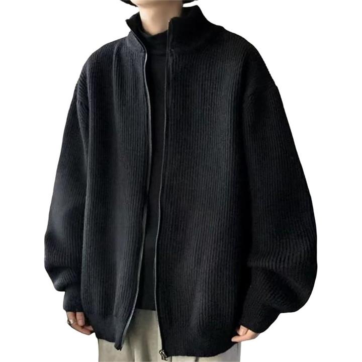 アスペルシオ オシャレ ニット カーディガン ストリート系 長袖 フルジップ ざっくり アウター メンズ フードなし 暖かい ハイネック ジャケット アウトドア 通勤 通学 コーディガン