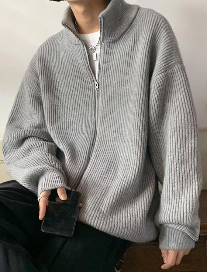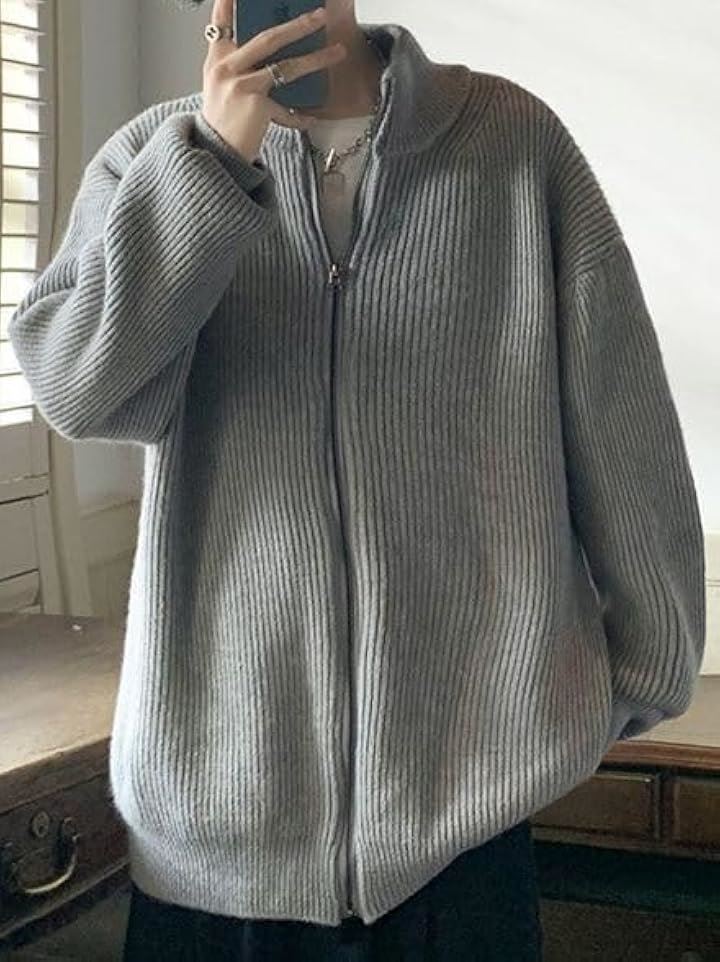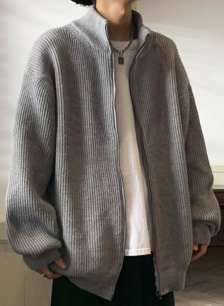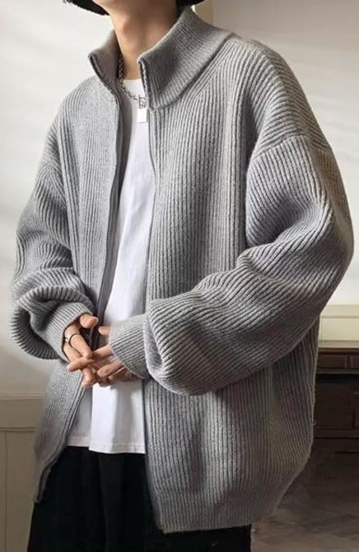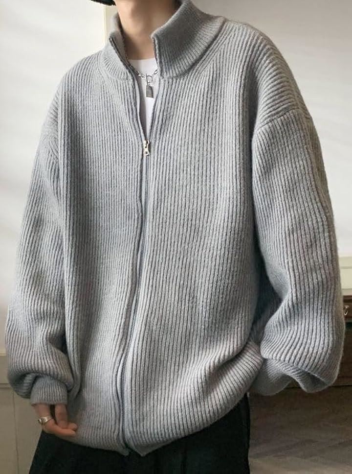アスペルシオ オシャレ ニット カーディガン ストリート系 長袖 フルジップ ざっくり アウター メンズ フードなし 暖かい ハイネック ジャケット アウトドア 通勤 通学 コーディガン
