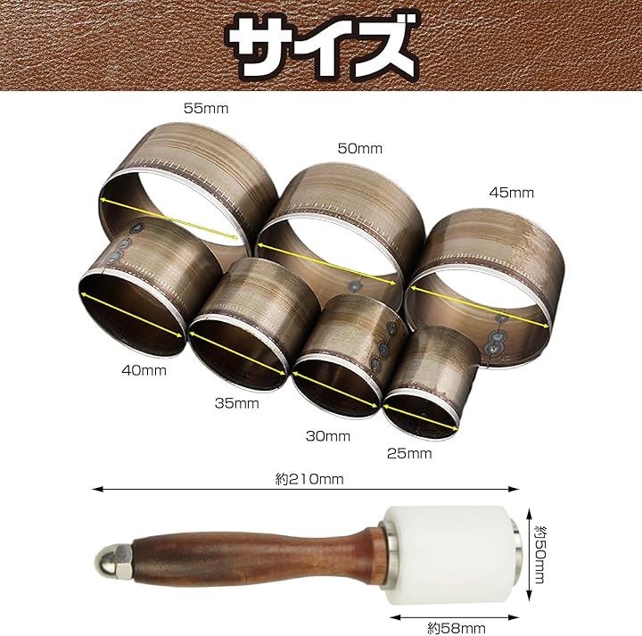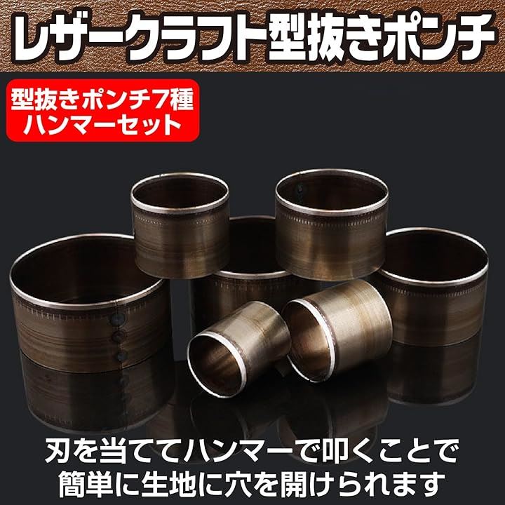 レザークラフト 型抜きポンチ 7種 レザーハンマーセット カービング ハンドメイド 端落とし 革製品 革加工