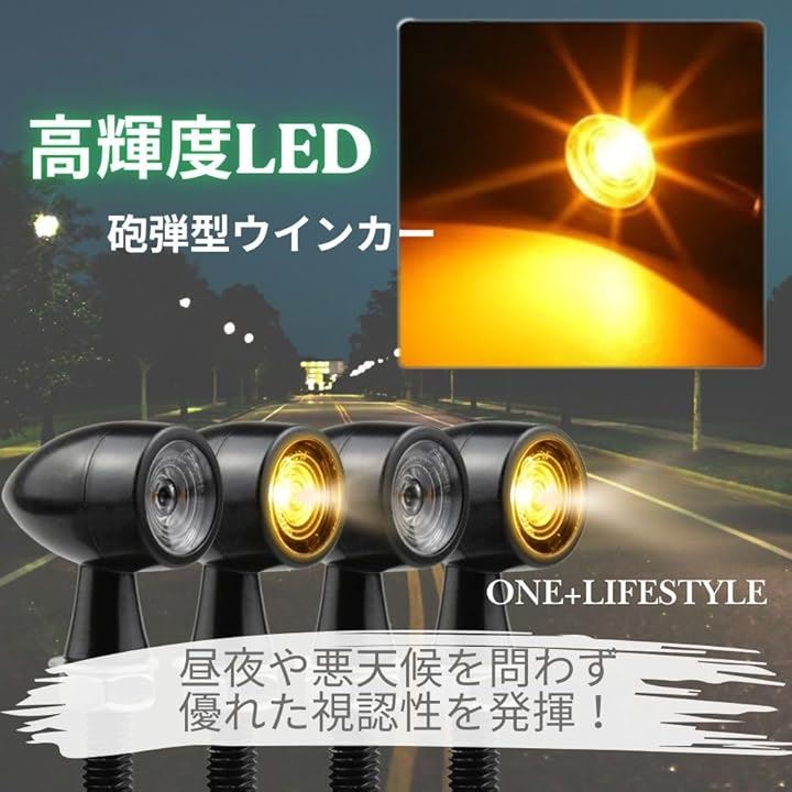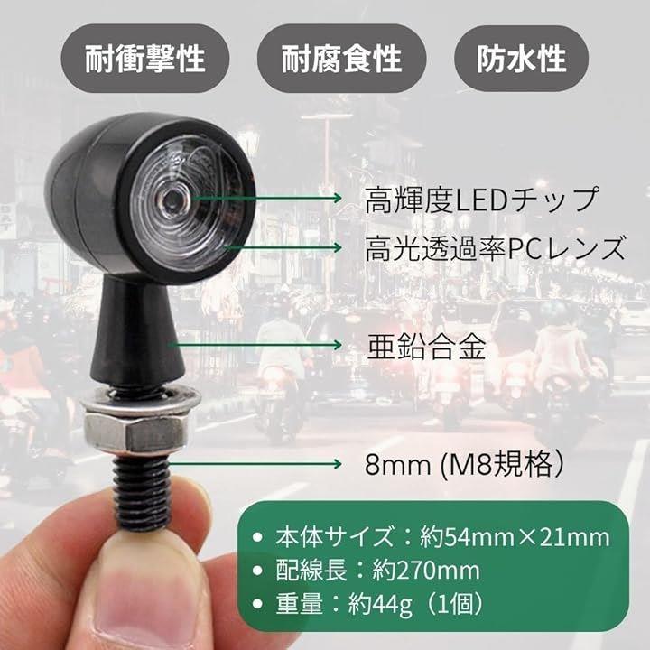 互換品 バイク用 LEDウインカー 砲弾型 高輝度 小型 4個セット M8 汎用