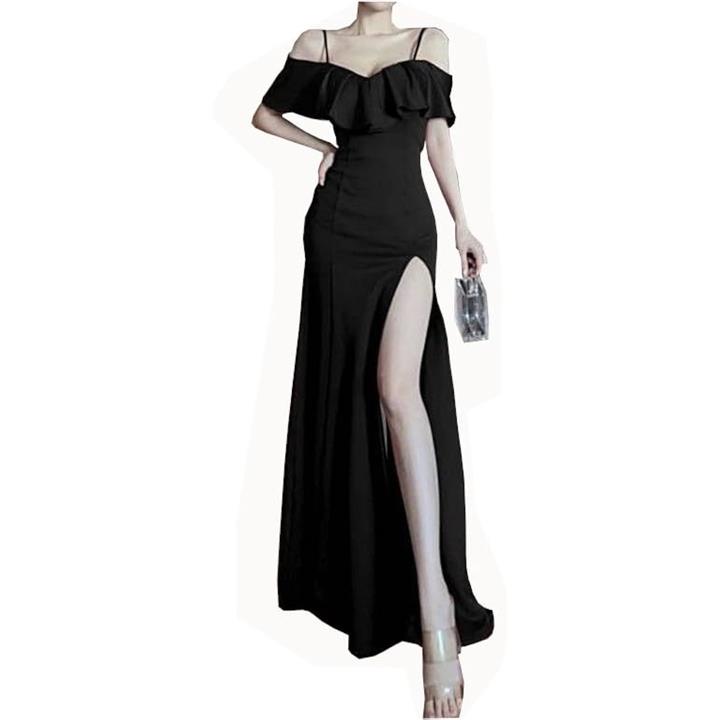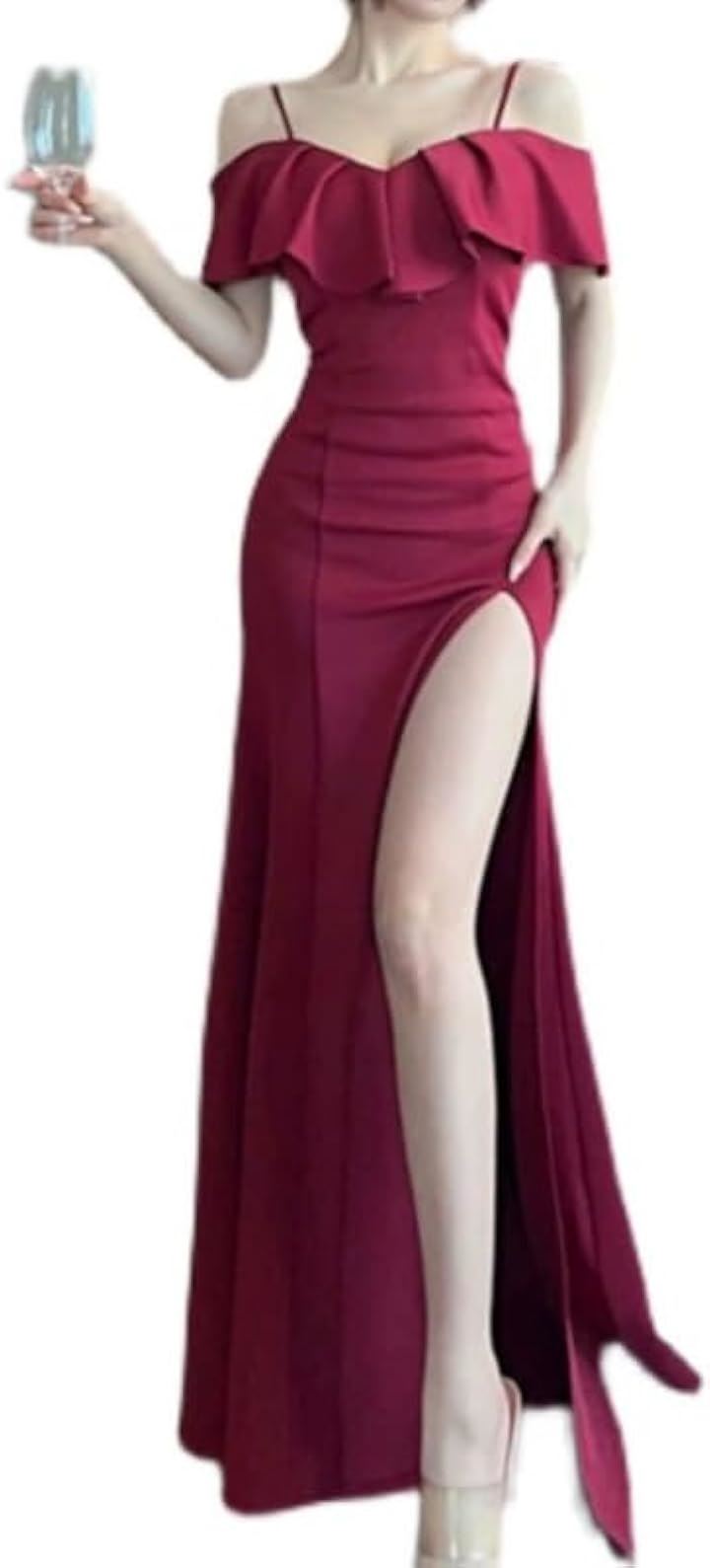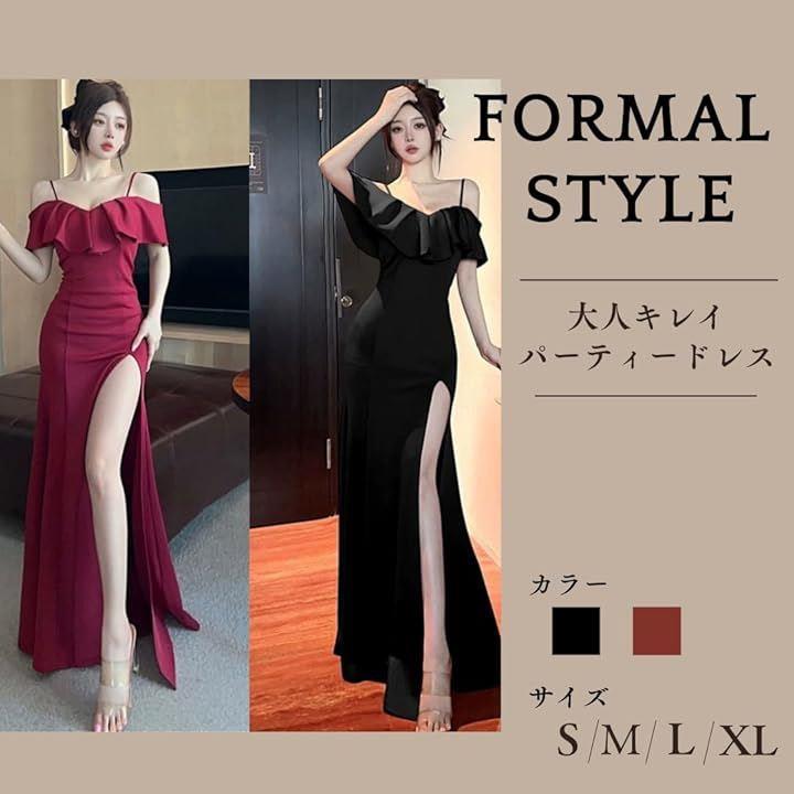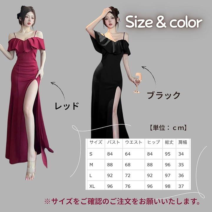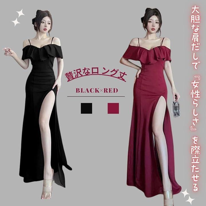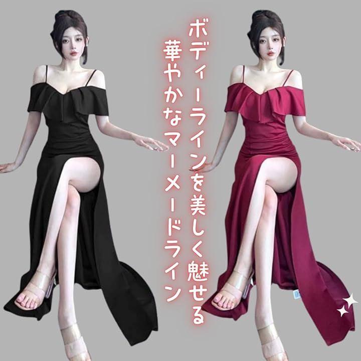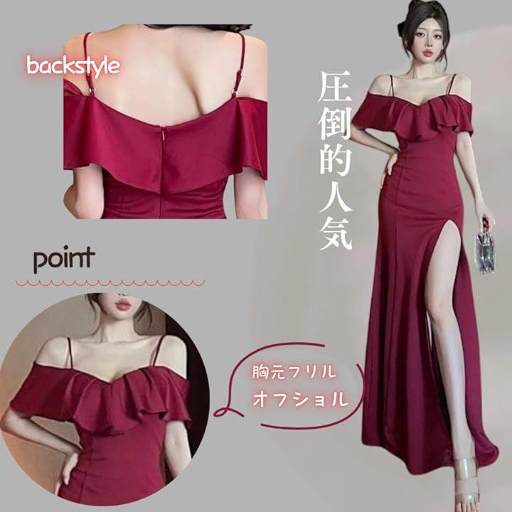 ロングドレス オフショルダー フリル スリット タイト パーティー 肩出し フォーマル ワンピース ナイトドレス レディース