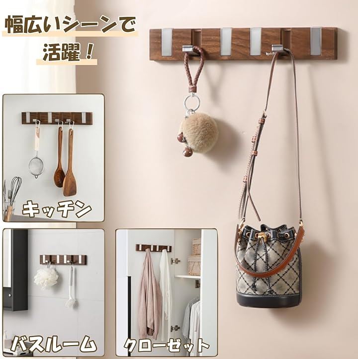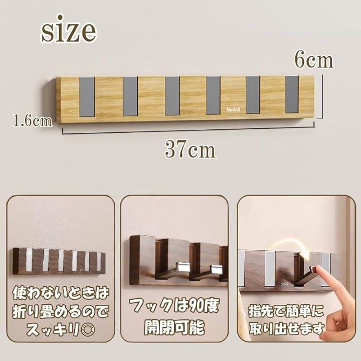 ウォールハンガー 6連フック 壁掛け 開閉式 玄関 収納 帽子掛け インテリア 洋服 収納家具 プラスチック
