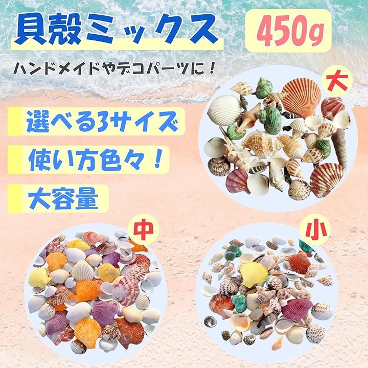 貝殻 ミックスセット ランダム 450g ハンドメイド 工作 DIY アクアリウム マリン デコ クラフト パーツ