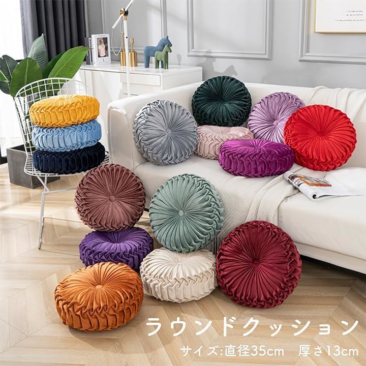 直径35cmのコンパクトサイズながら厚みがあり、ソファやベッドに置くだけで高級感のあるインテリアに早変わり。