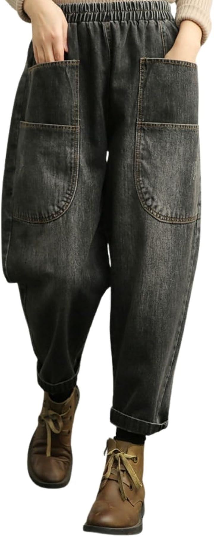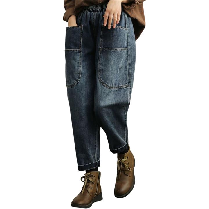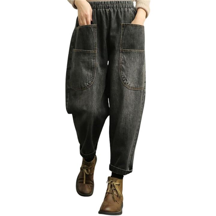 [Four leaf] レディース デニムパンツ ハイウエスト ハーレム 九分丈 ワイドシルエット ヴィンテージ ウォッシュ加工 ゆったり 大きいサイズ |