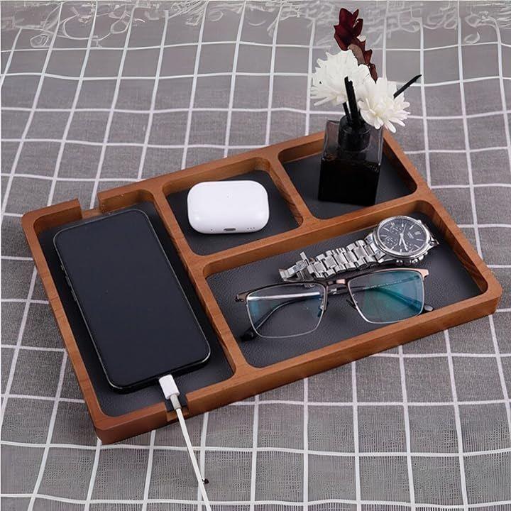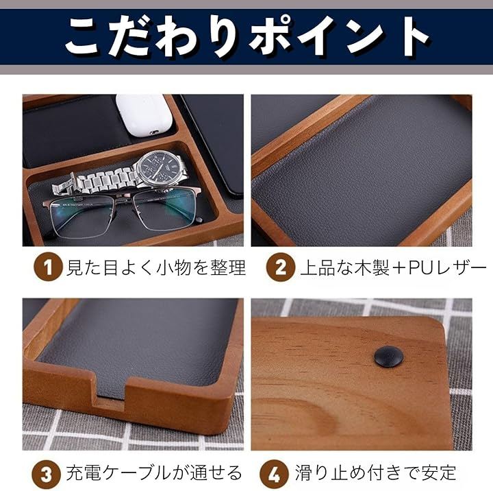卓上トレー デスク トレイ スマホ置き 小物 収納 整理 文房具 木製