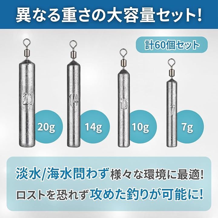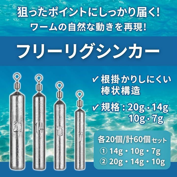フリーリグ シンカー オモリグ バス 根魚 キス 釣り ダウンショット ドロップ 各20個 60個セット