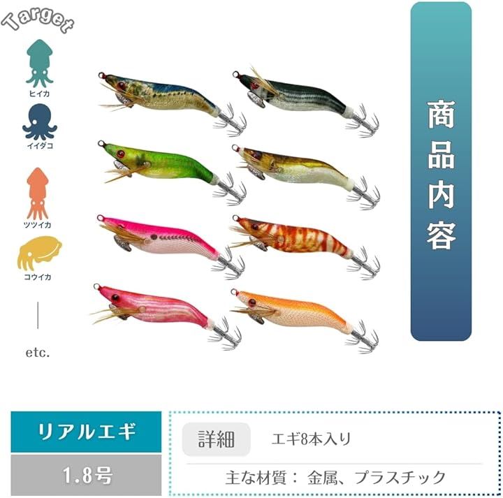 エギ エギング 8本セット 小型 ミニ ルアー イカ タコ イカメタル 釣り リアルカラー
