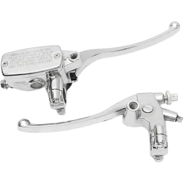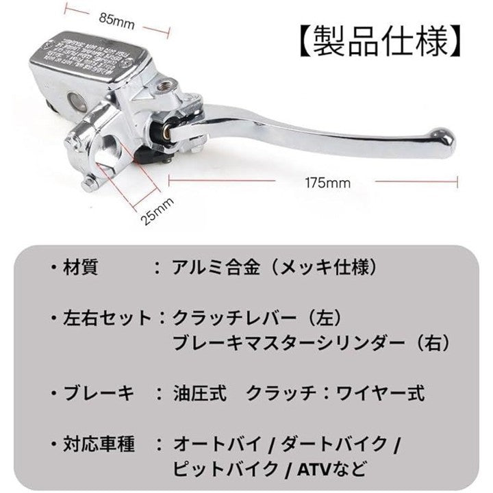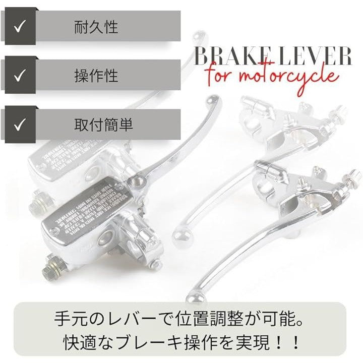 バイク用 1インチ ハンドル対応 ブレーキ クラッチレバー シルバー マスターシリンダー セット 汎用 メッキ ドラッグスター バルカン