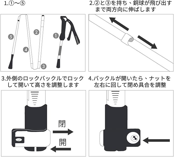 「長さの調整」 x 身長や地形、体重に合わせて適切な長さに調整してください。