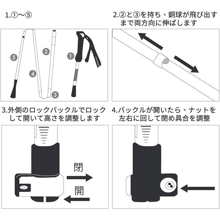 「こもれび屋」 トレッキングポール 軽量アルミ 折りたたみ 110cm 収納バッグ付 |