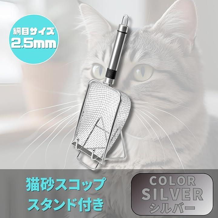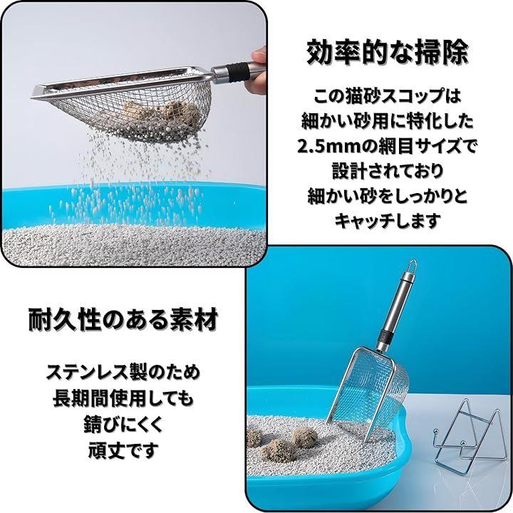 猫砂スコップ ステンレス 小粒用 スタンド付き