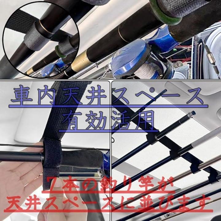 車載 用 ロッドホルダー 7本 収納 車内 天井 釣り竿 竿置き ロッドキャリー ストラップ