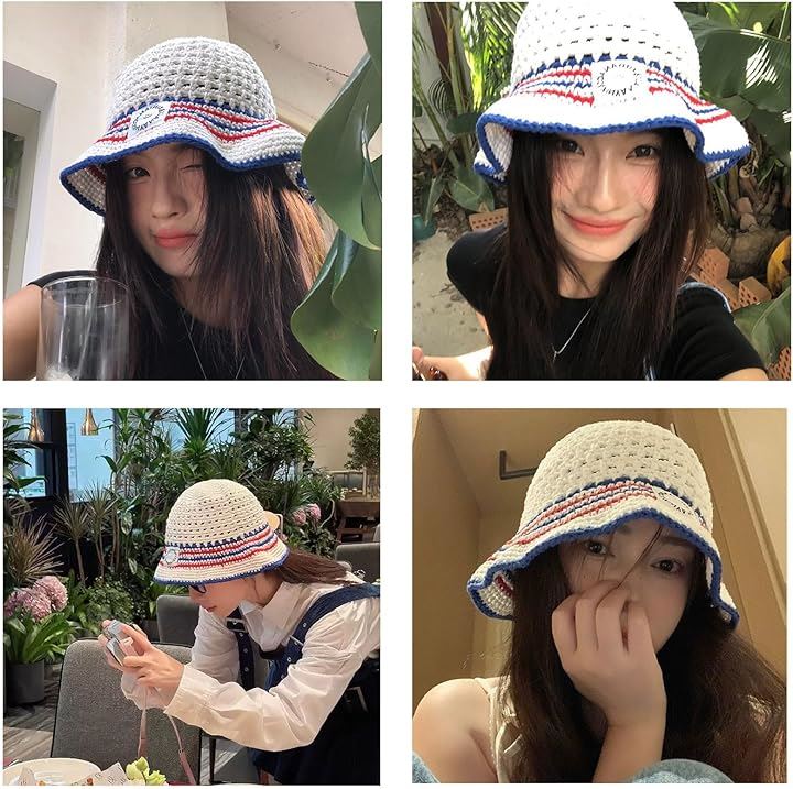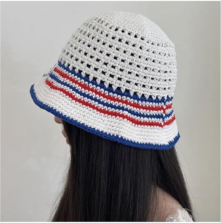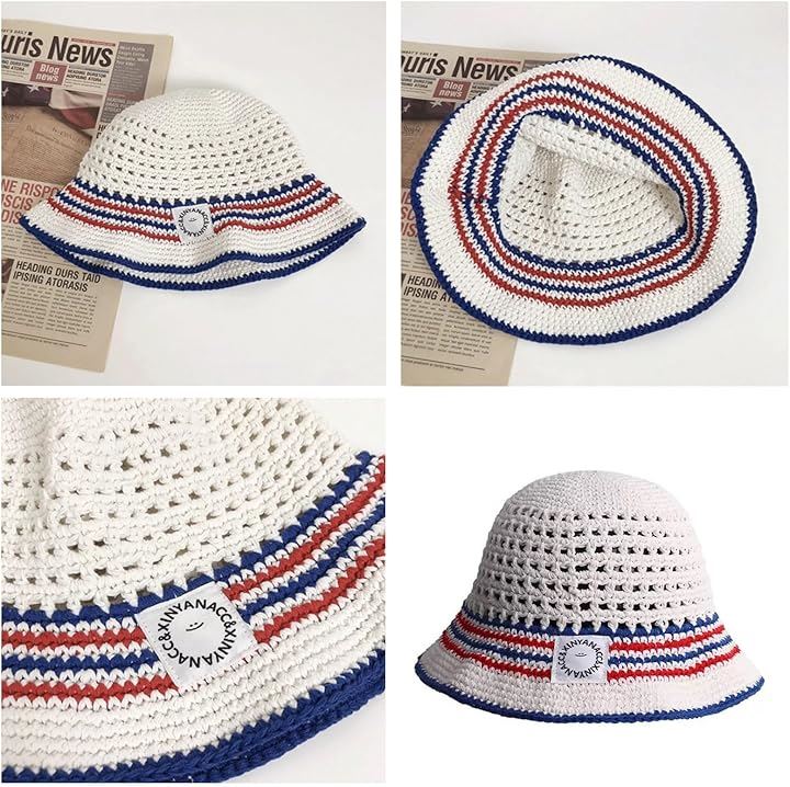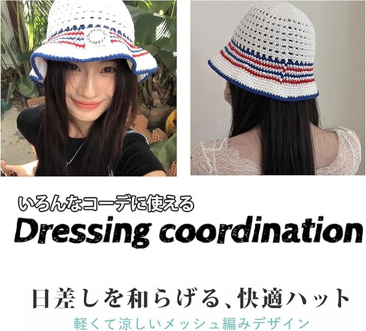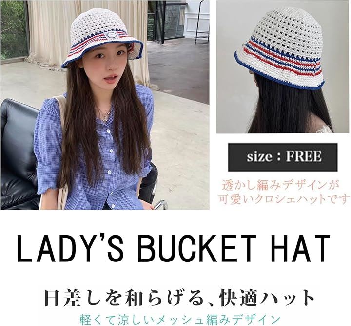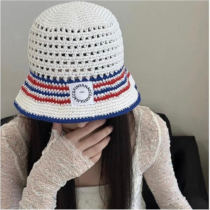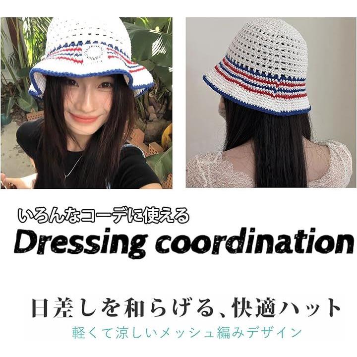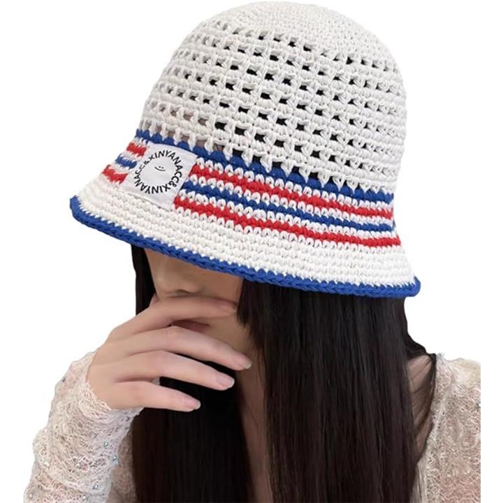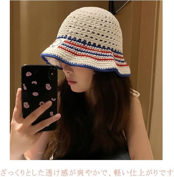 バケットハット 手編み風 チューリップ レディース トリコロールカラー 小顔 効果 韓国 ファッション カジュアル 通気性 帽子 UV 対策 メッシュ バケハ HAT 大きい リゾート 可愛い お洒落 海 旅行 ストロー 麦わら ニット 女性 紫外線