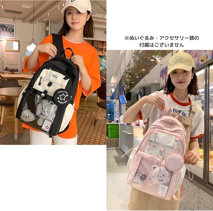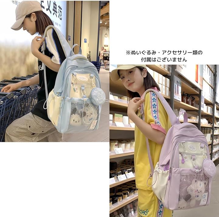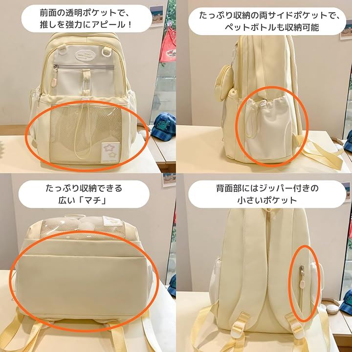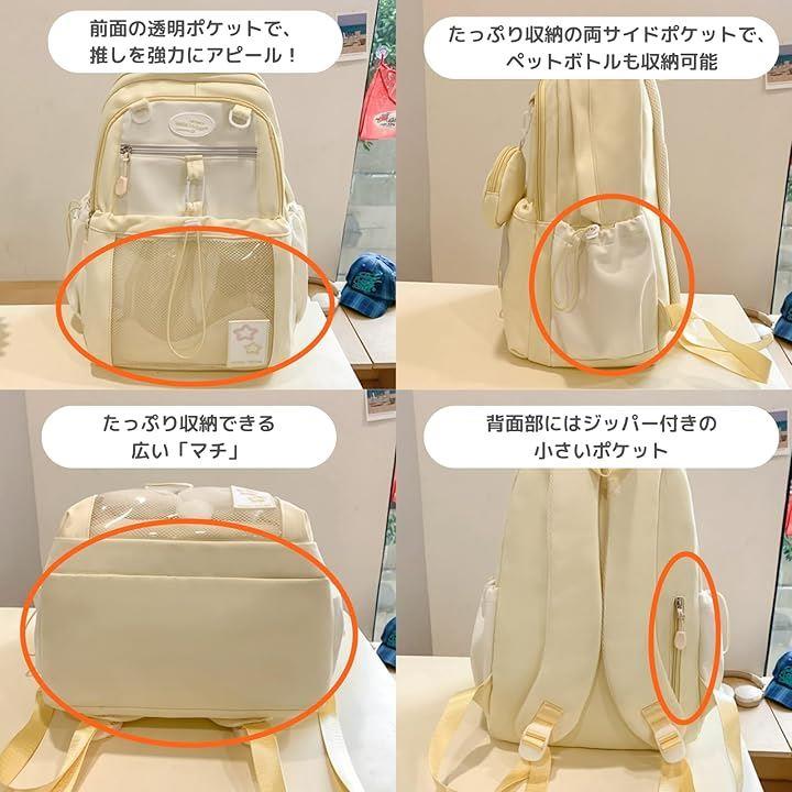 リュック 痛バッグ 透明ポケット付き 推し色バッグ かわいい 推し活 オタ活 通学 軽量 レディー