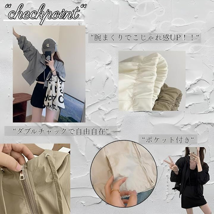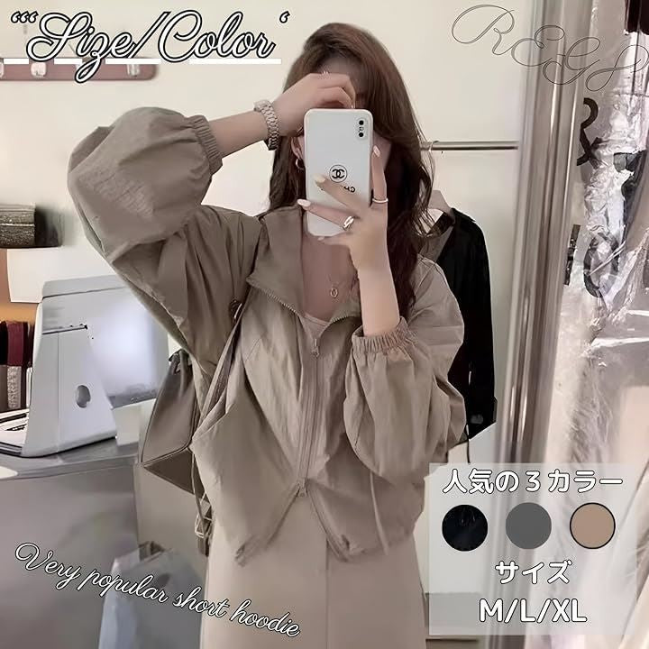 [レグエイト] ブルゾン ジャケット マウンテン UVカット パーカー レディース 春 夏 秋 韓国ファッション 防水 防風 フード付き ショート丈 アウター |