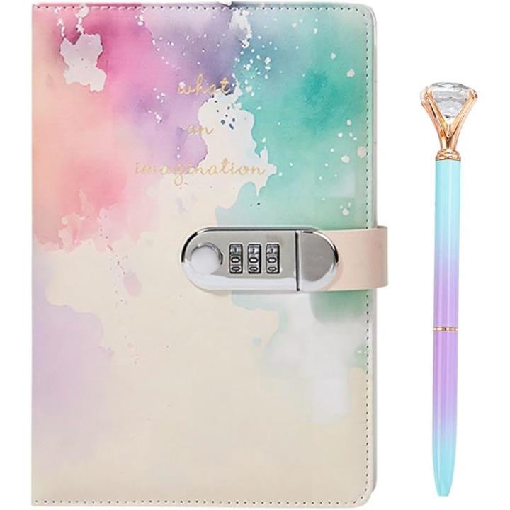 鍵付き日記帳 女の子向け A5サイズ ダイヤルロック付き ボールペン付き 秘密ノート ギフト