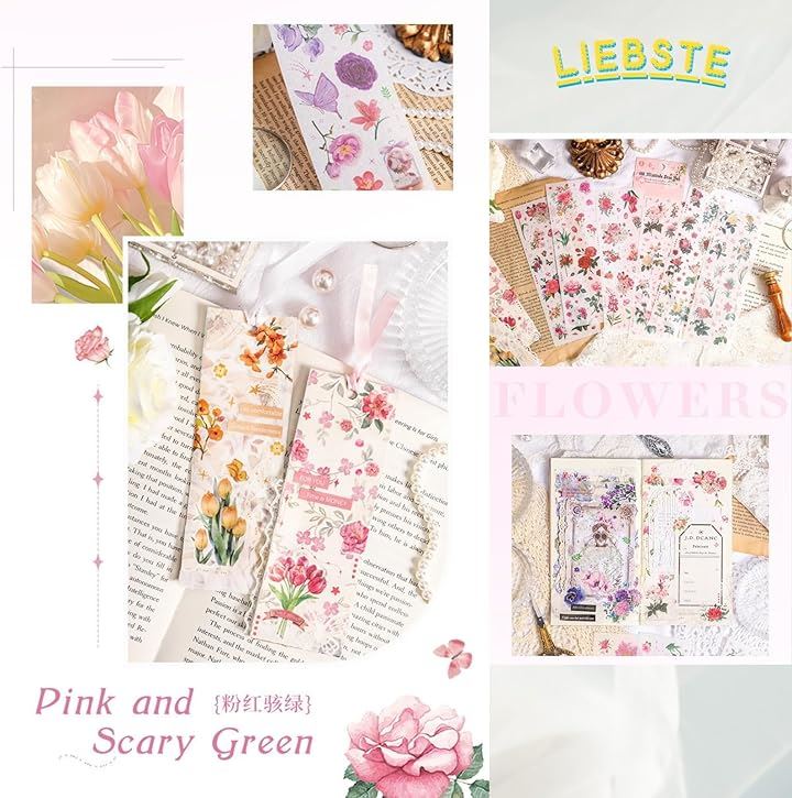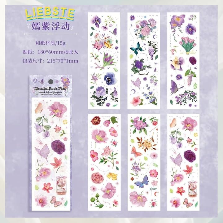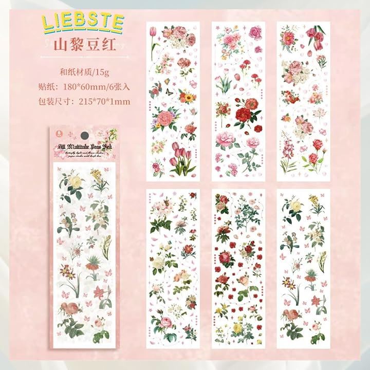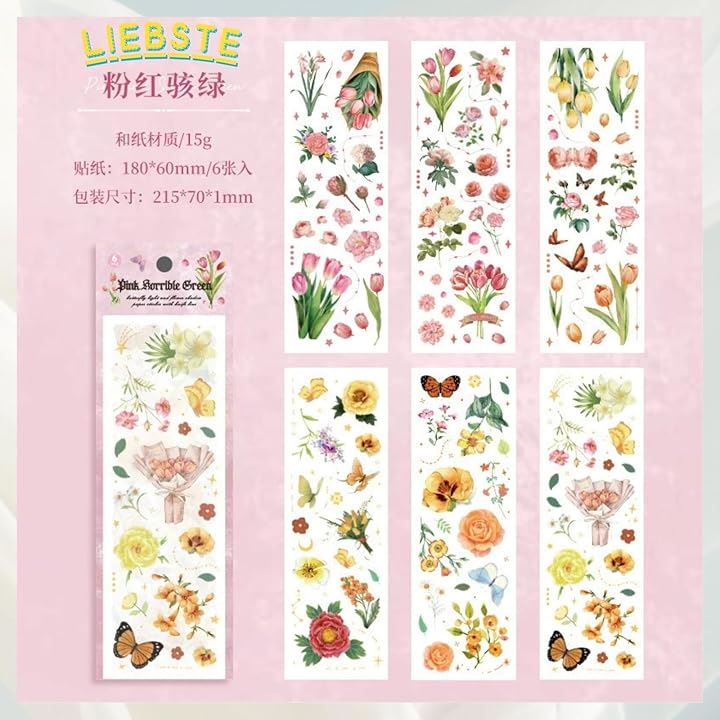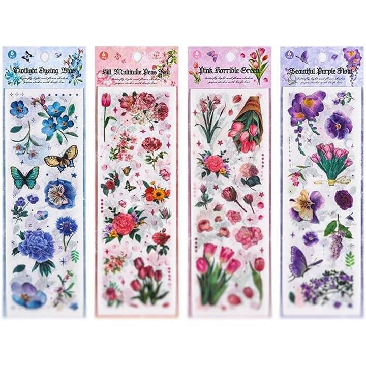 手帳デコシール コラージュ 素材 詰め合わせ ダイカット 4種 6シート マステシール 花柄 花びら 花束 ブーケ シールセット 蝶々