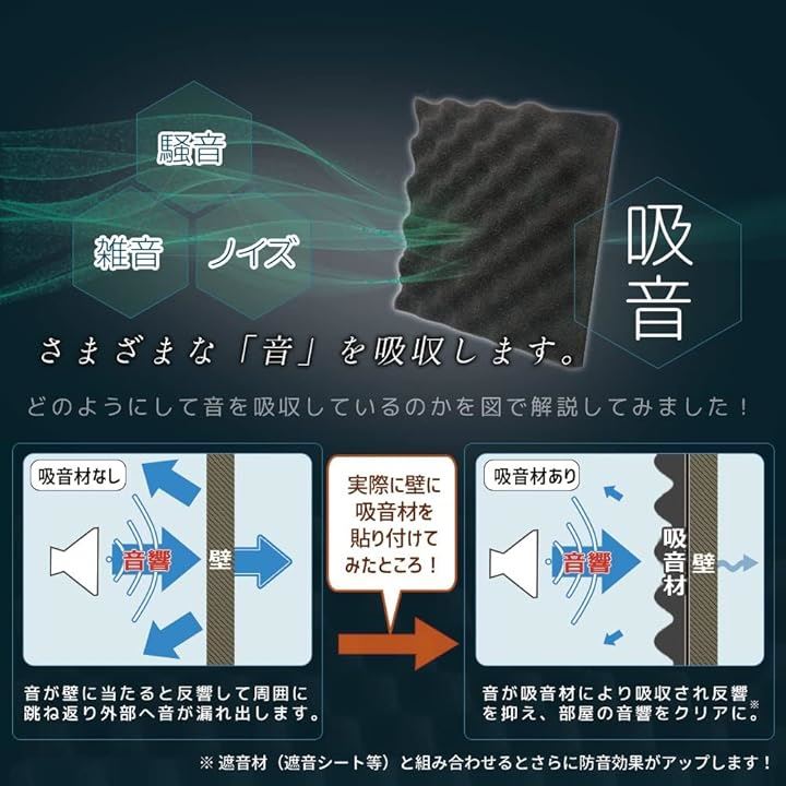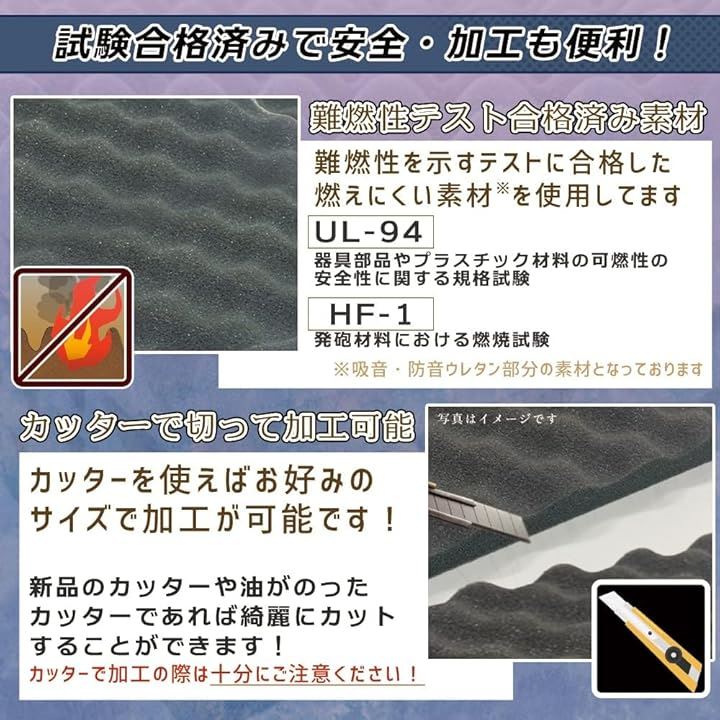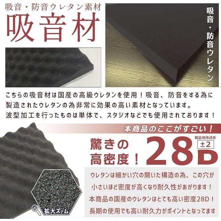 国産 吸音材 25cm x 厚み 2.5cm 日本製 防音 壁 防音材 騒音対策 難燃 プロファイル 壁面 ウレタン スポンジ スタジオ 楽器 ブラック ボーカルブース テレワーク 収録 録音ブース 緩衝材 ヴォーカル 密度 28D 2枚入り 粘着なし