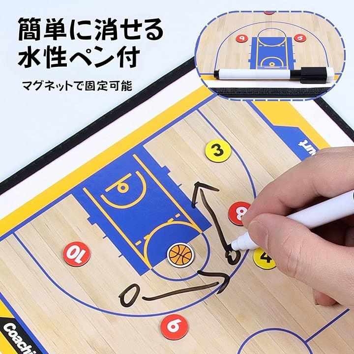 バスケットボール 作戦ボード ホワイトボード付き コーチ用 持ち運びやすい ペン・消しゴム・コマ付