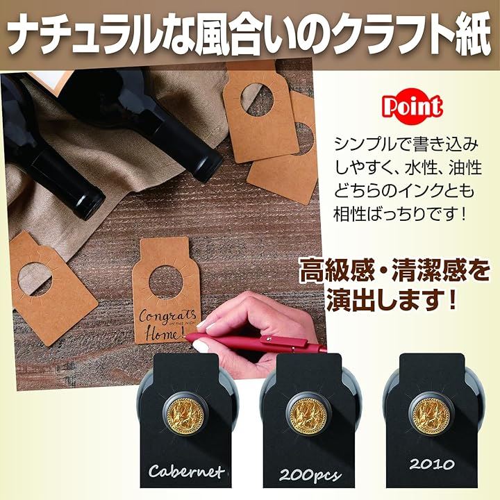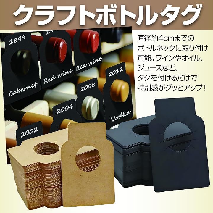 ボトルタグ ワインボトル 吊り下げタグ ボトルキープ 無地 クラフト紙 ワインタグ