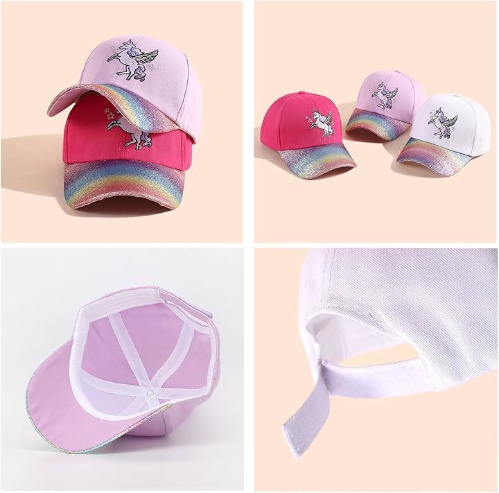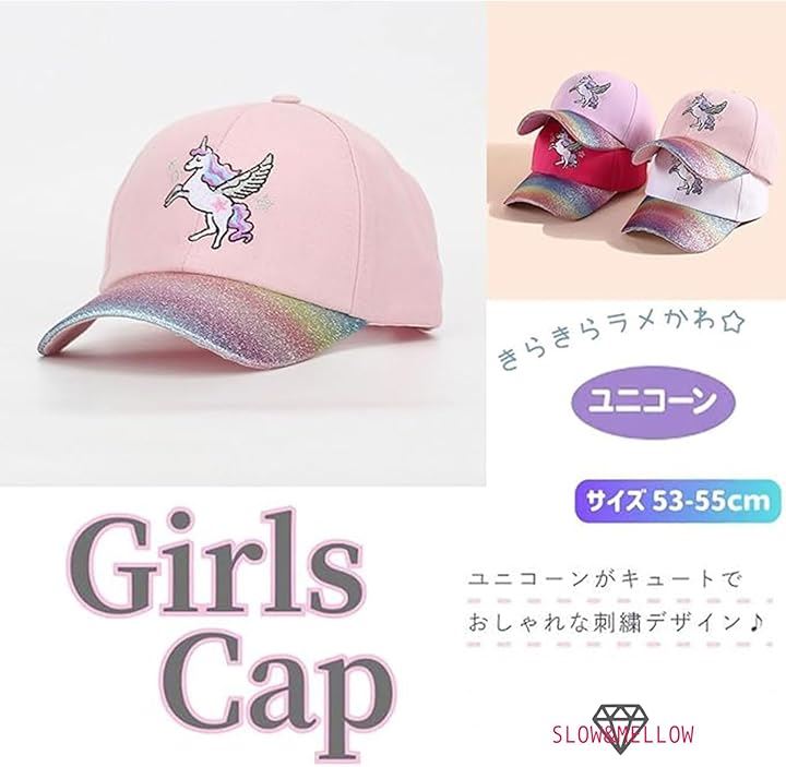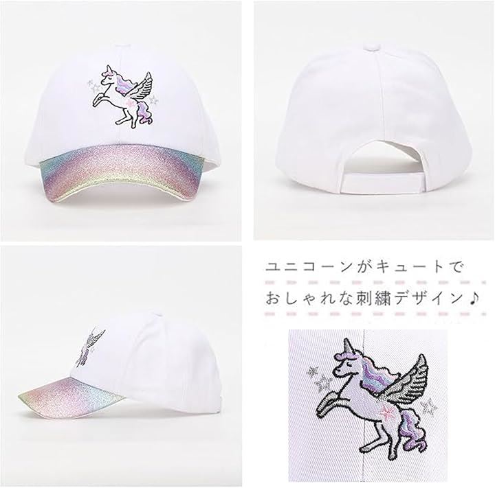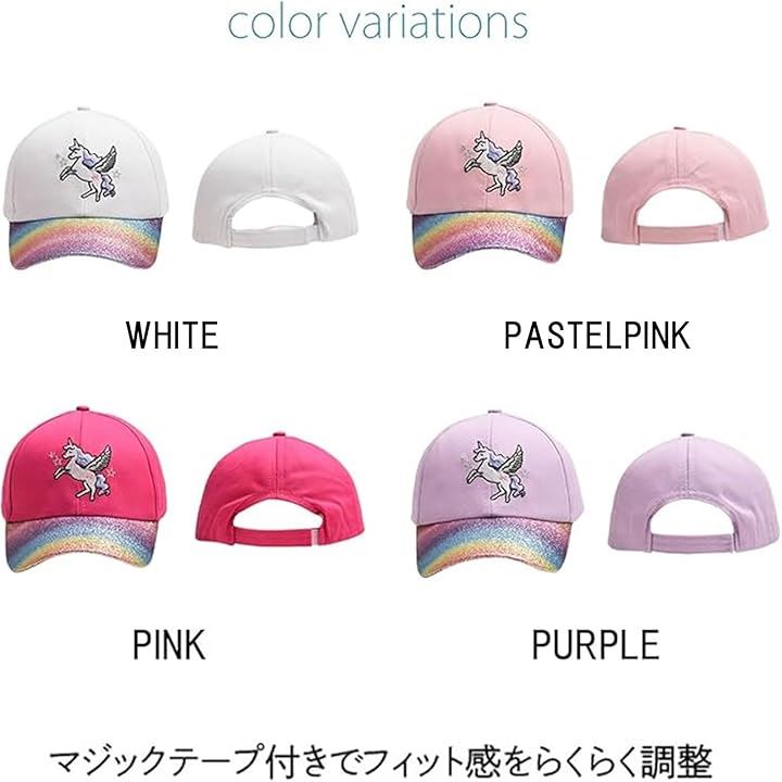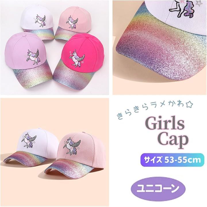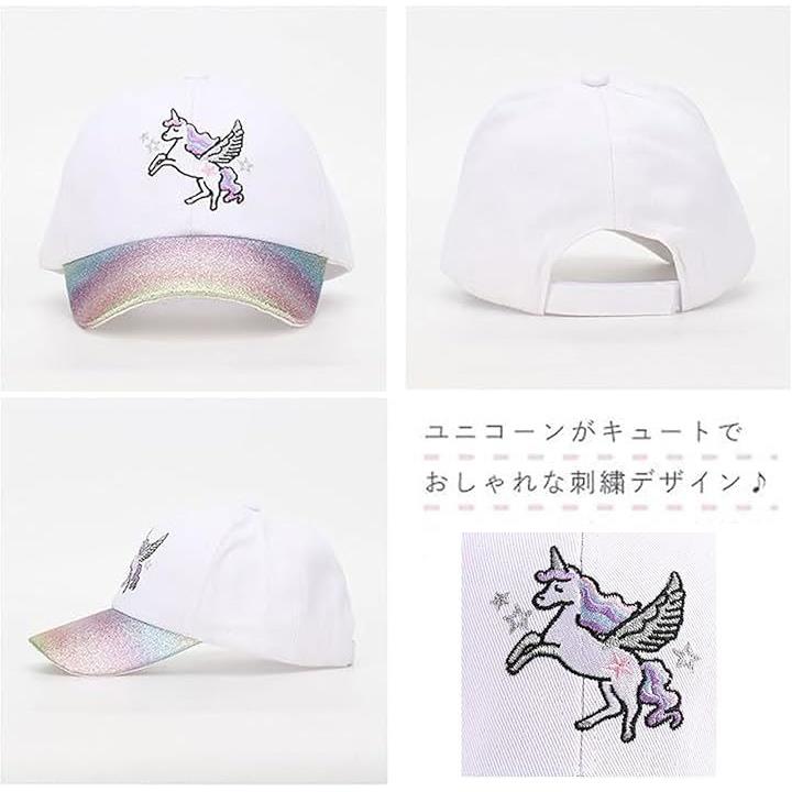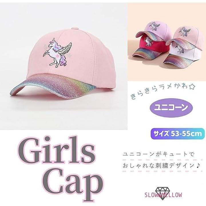 キッズ 女の子 キャップ ユニコーン ラメ 帽子 可愛い パステル カラー 日除け 小学生 子供 サイズ 調整 園児 幼稚園