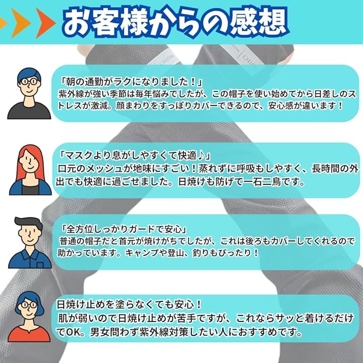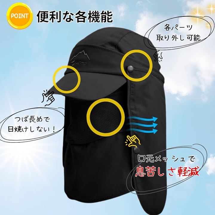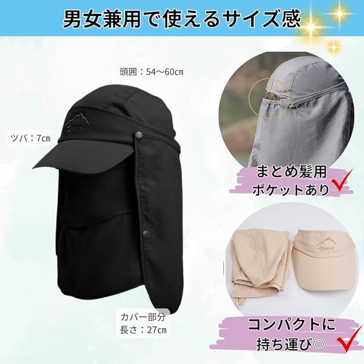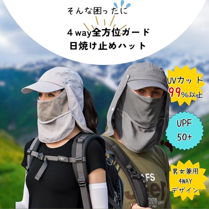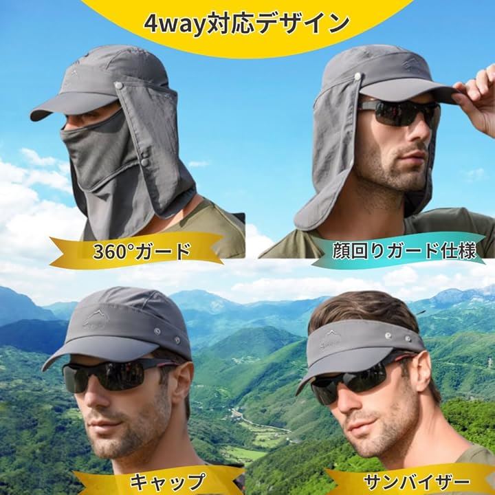 4WAY仕様 UVカット率99% 日よけ帽子 キャップ サンバイザー フェイスカバー ネックガードに変形可 アウトドア 農作業 釣り 自転車