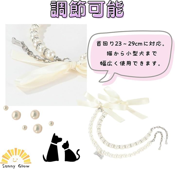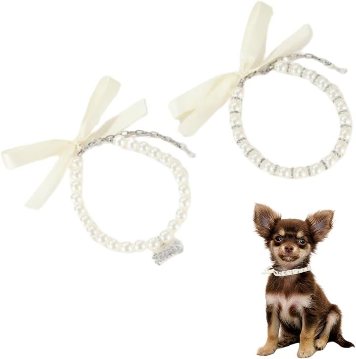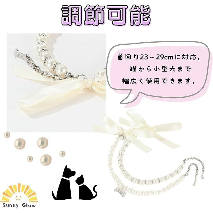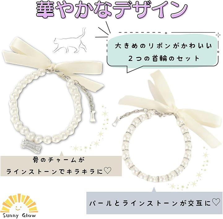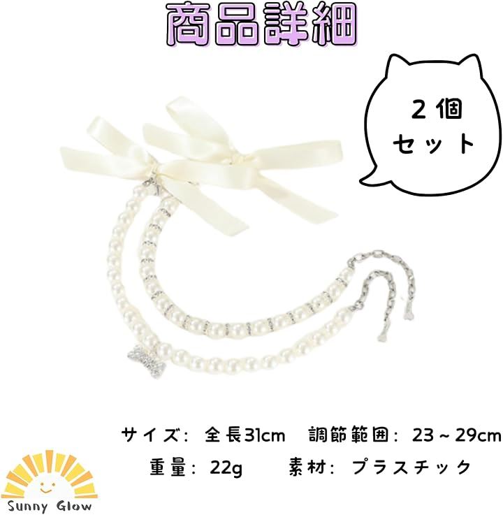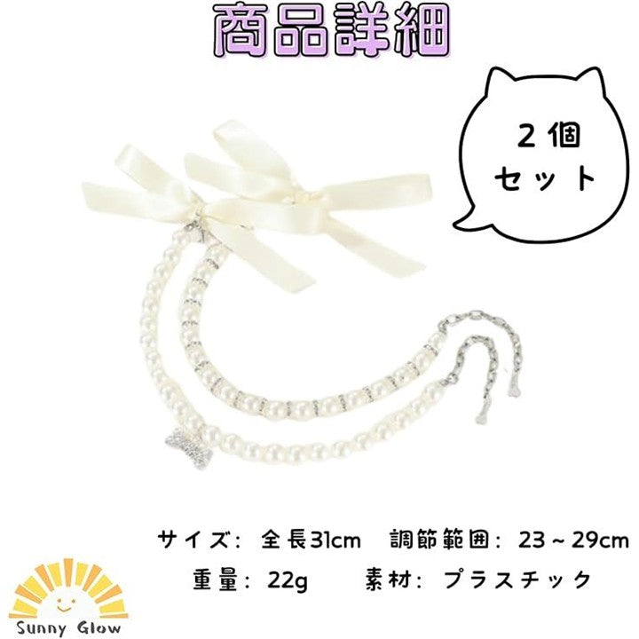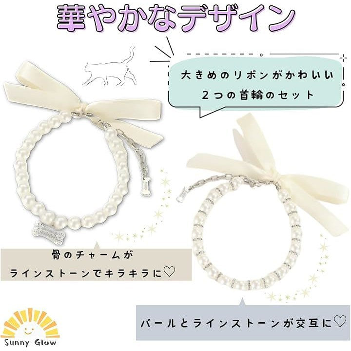 ペット 首輪 猫 犬 用 ネックレス キラキラ リボン 可愛い 軽量 調節可能 ファッション小物 おしゃれ 着飾り アクセサリー 誕生日 記念日 2個セット