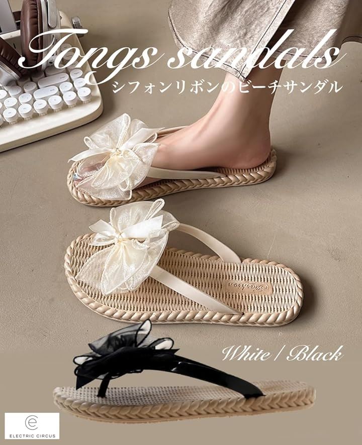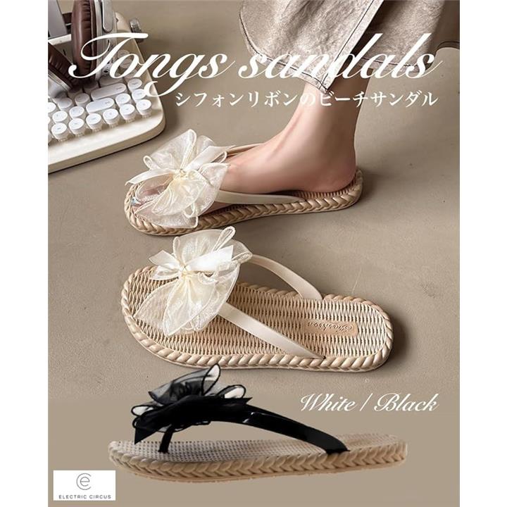 ビーチサンダル コンフォートサンダル シフォン リボン ビーサン プール 旅行 ベランダ レディース