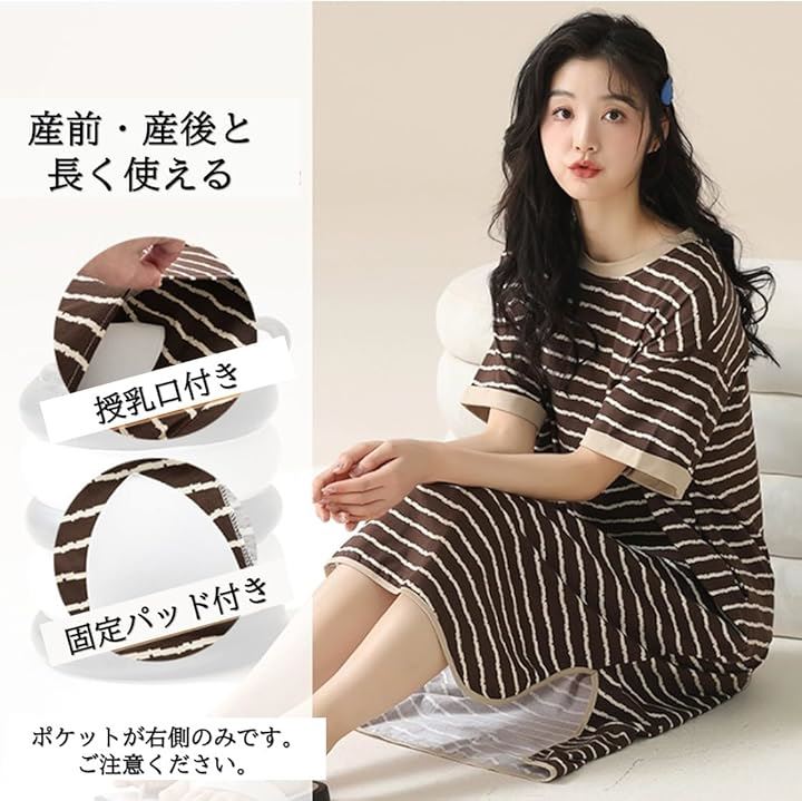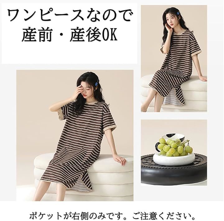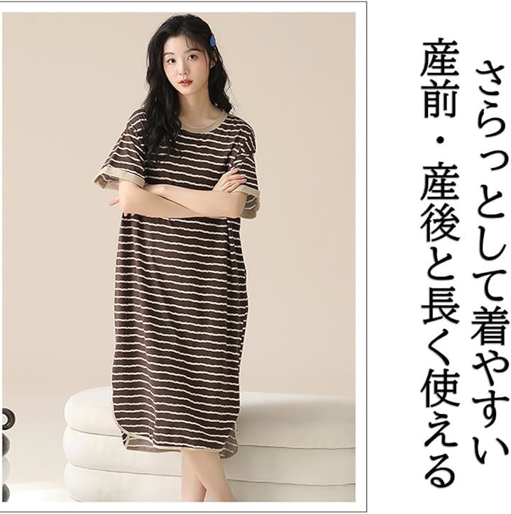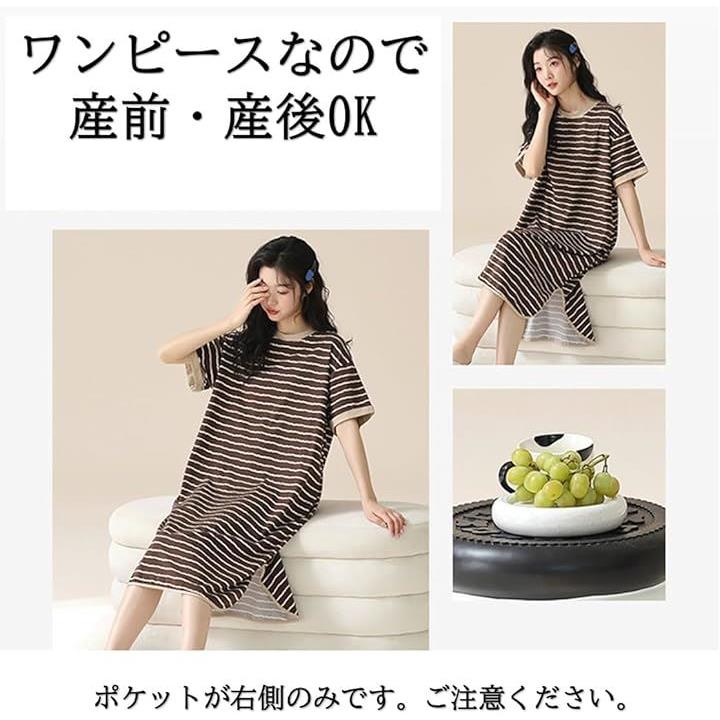 マタニティ パジャマ 授乳 ルームウェア 出産 半袖 産前 産後 授乳口 付き 春 夏 秋 ワンピース ボーダー