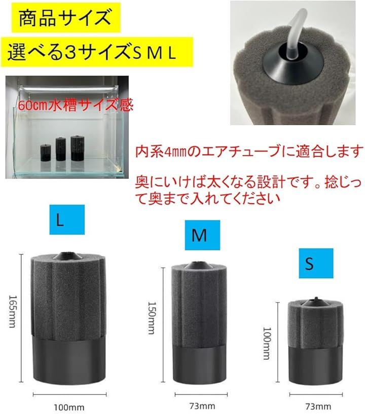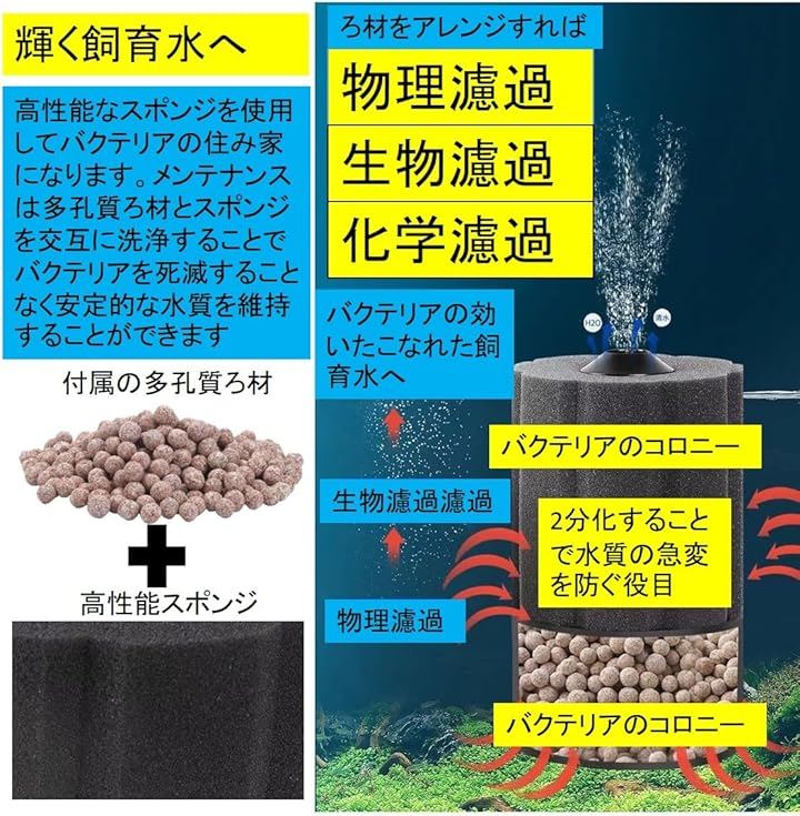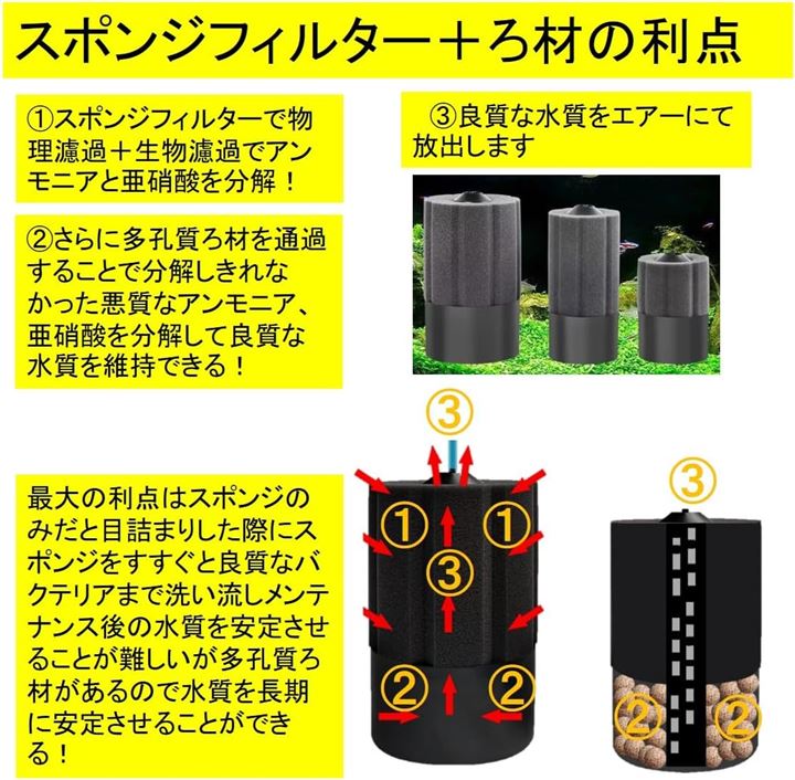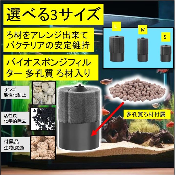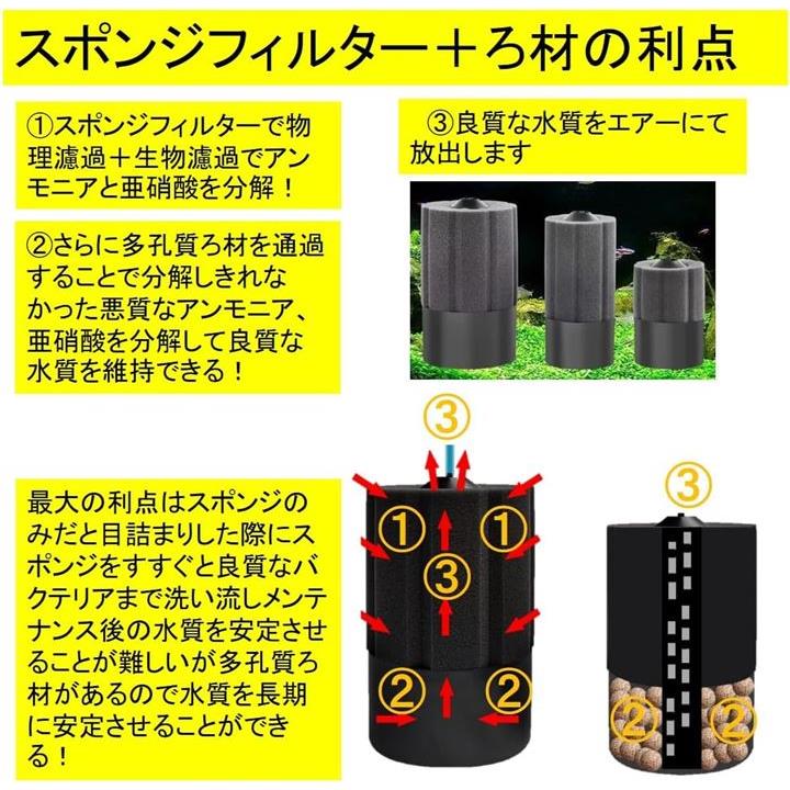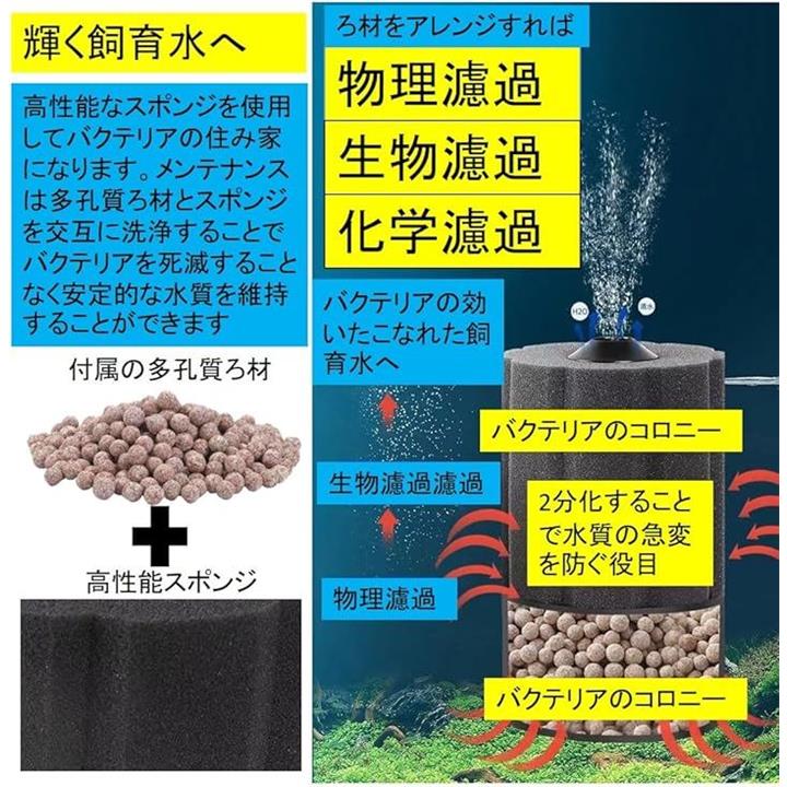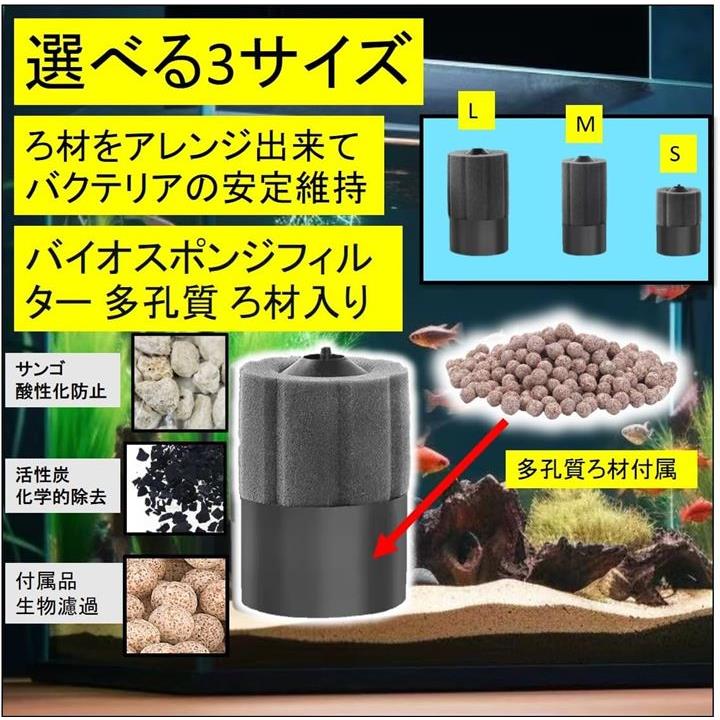 丸型 バイオスポンジフィルター 多孔質 ろ材入り 簡単設置 アクアリウム 水槽 ろ過 バクテリア メダカ エビ アロワナ 熱帯魚 金魚