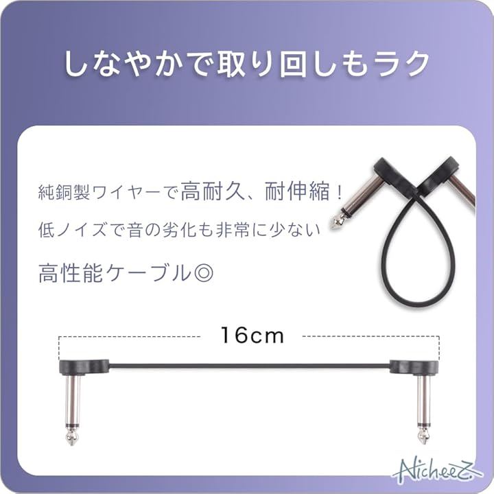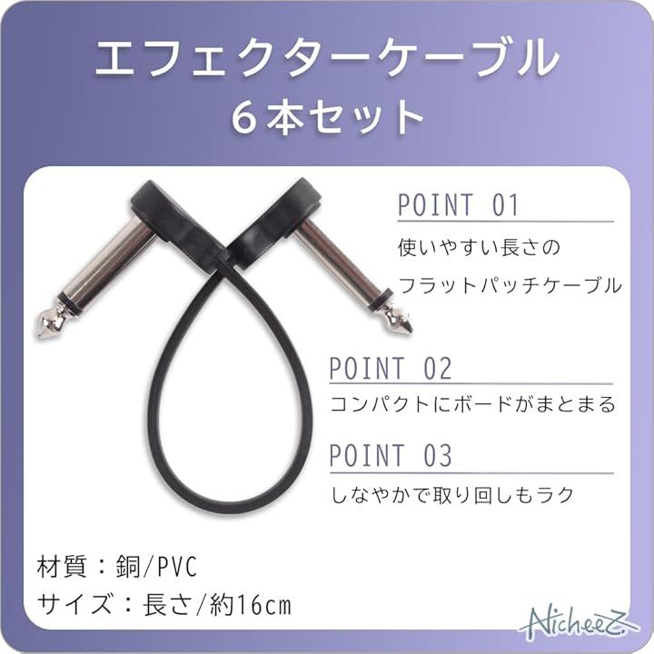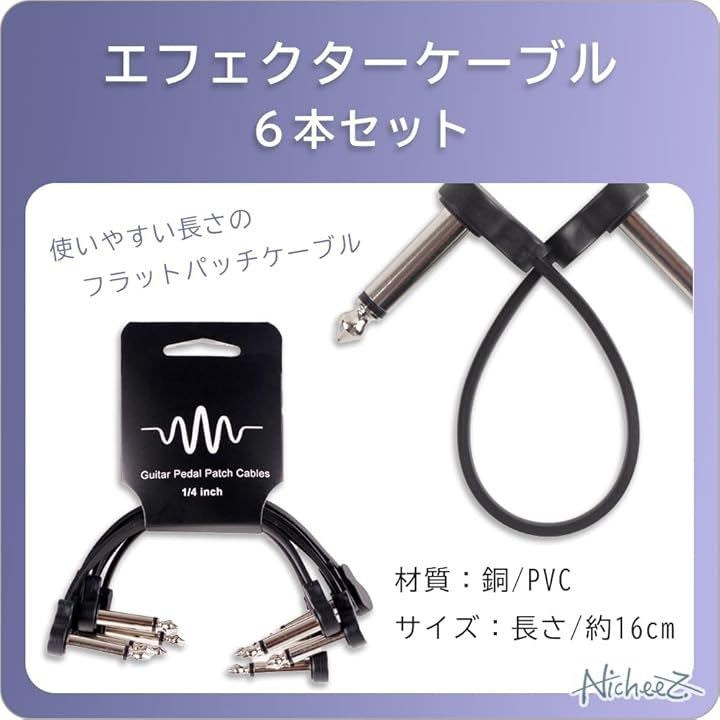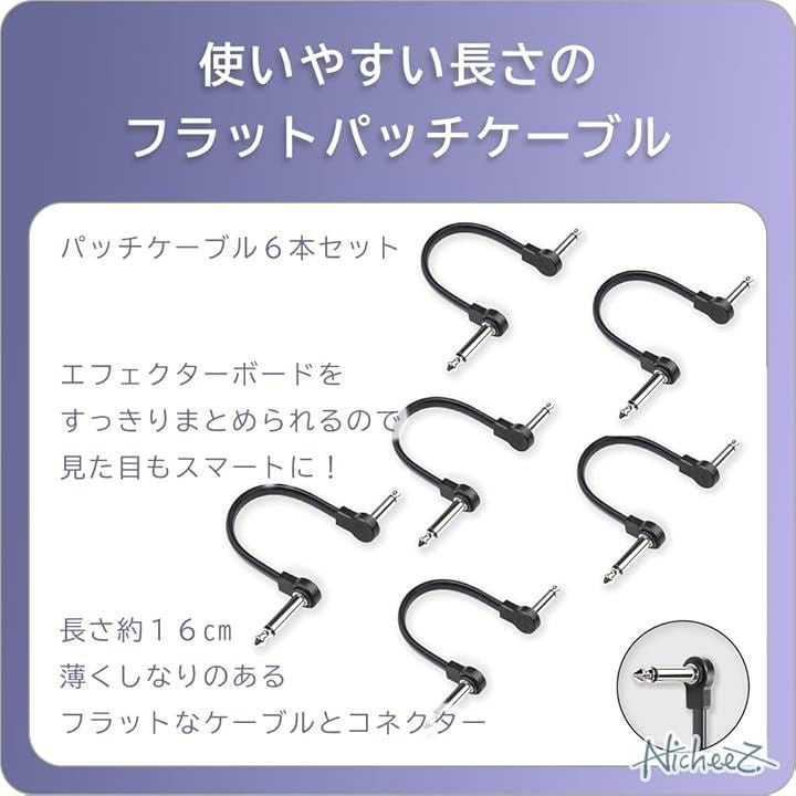 パッチケーブル ギターエフェクター用 フラットケーブル L-L型 スペース節約 6本セット