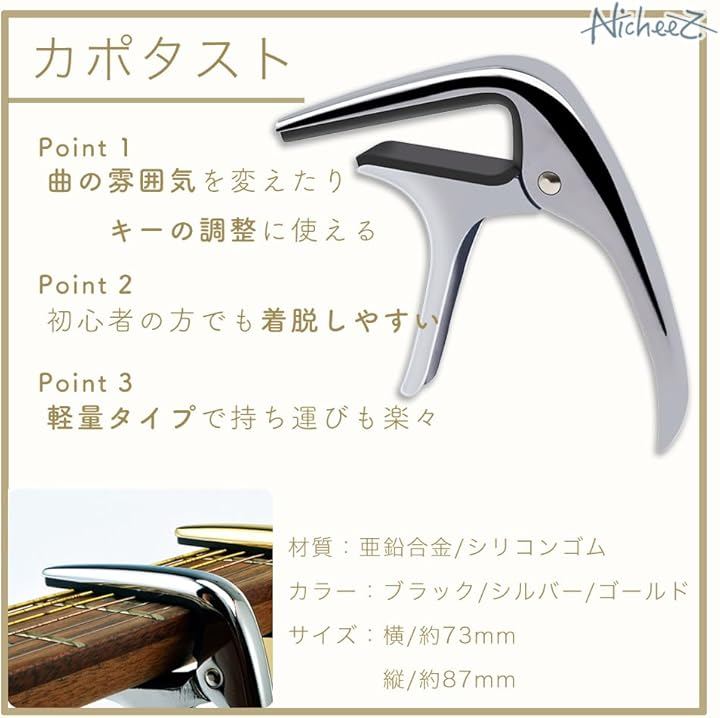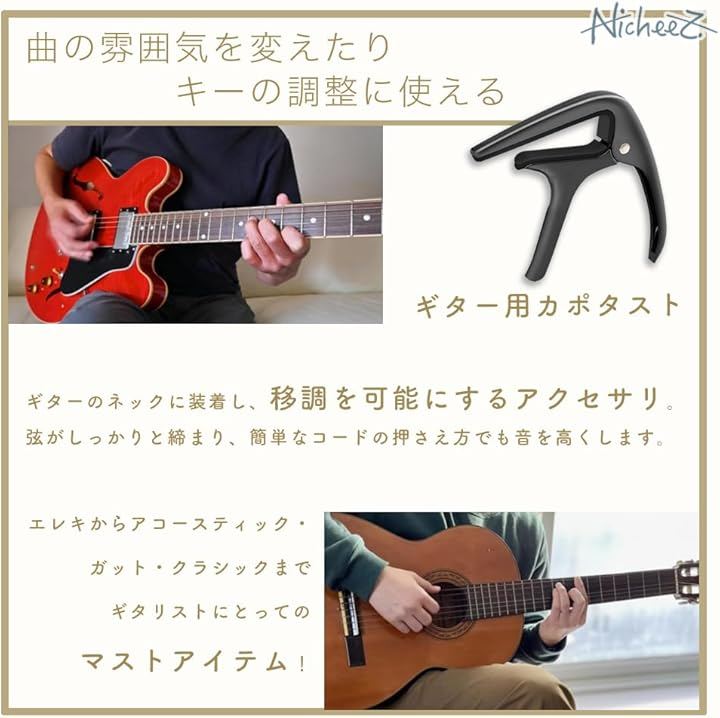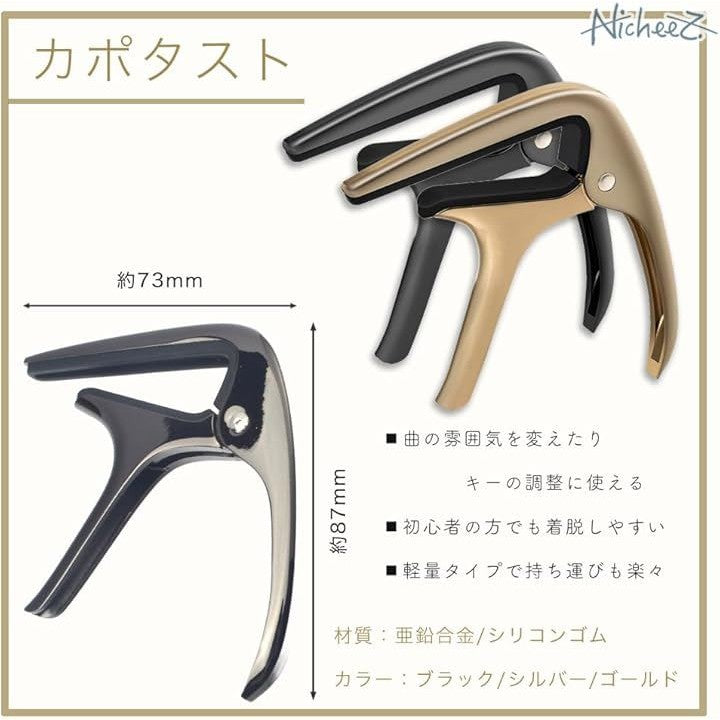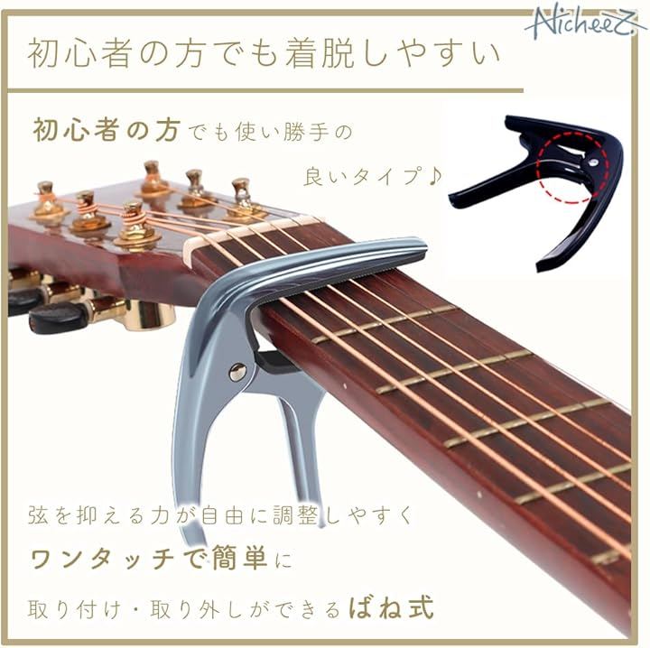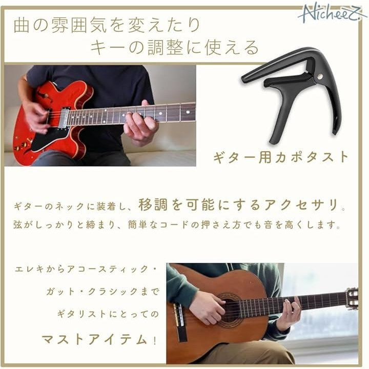 ギターカポタスト アコースティックギター エレキギター ベース ウクレレ クイックチェンジ 超軽量 アルミ合金 ブリッジピンプラー付き クラシックギター
