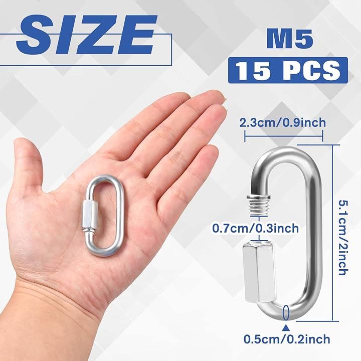 M5 リングキャッチ カラビナ ネジロック付き 15個入り Dリング バックル カラビナフック 小型 強い 連結環 耐荷重90KG 脱落防止 錆びにくい 多機能