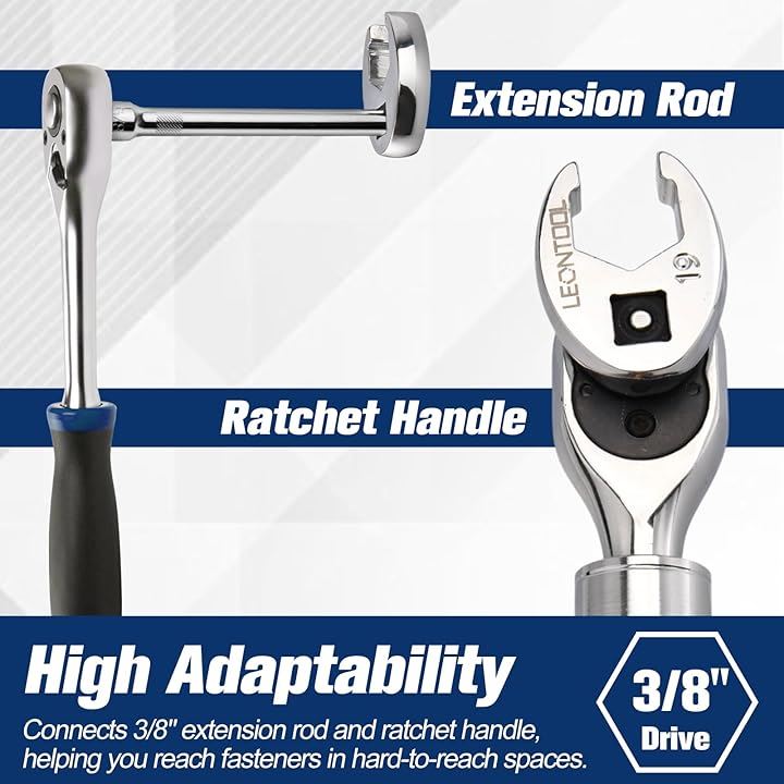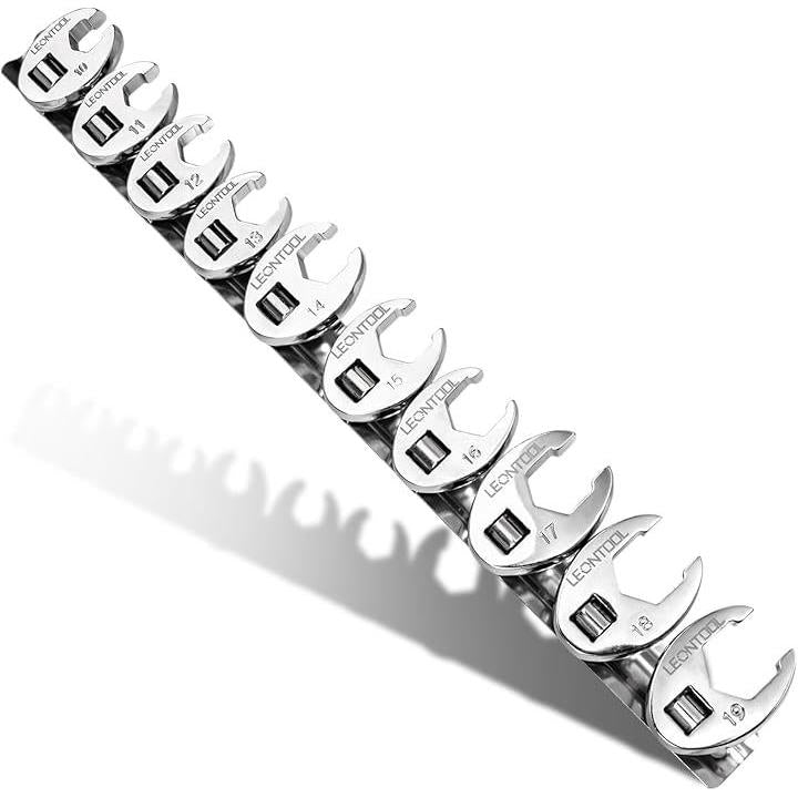 クローフットレンチセット 10点組 フレアナットレンチ メトリック 10~19mm 差込角9.5mm 3/8インチ Cr-V プロ 持ち運びやすく ドライブラチェット延長棒