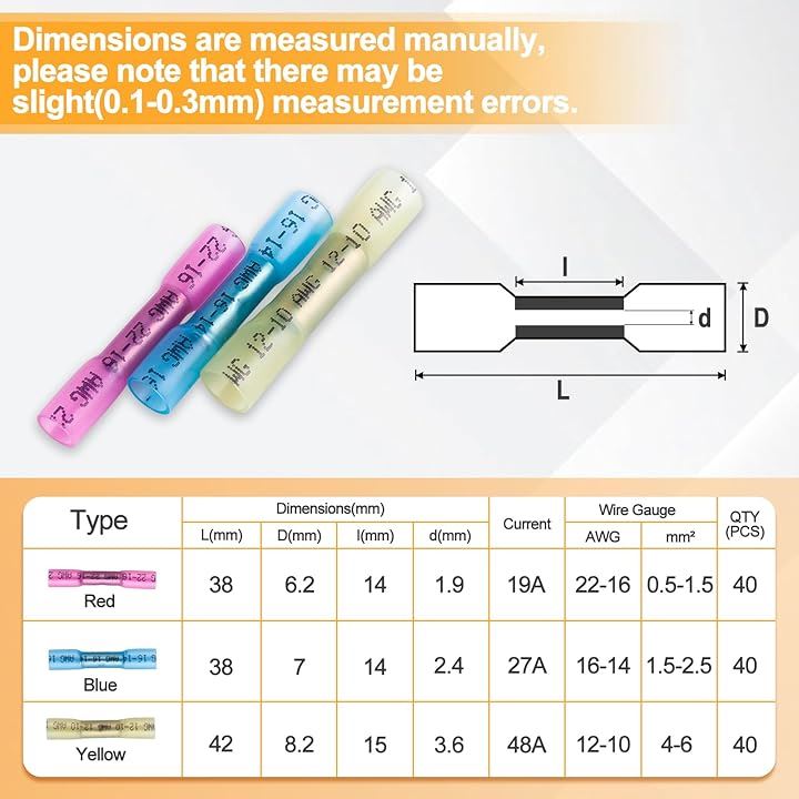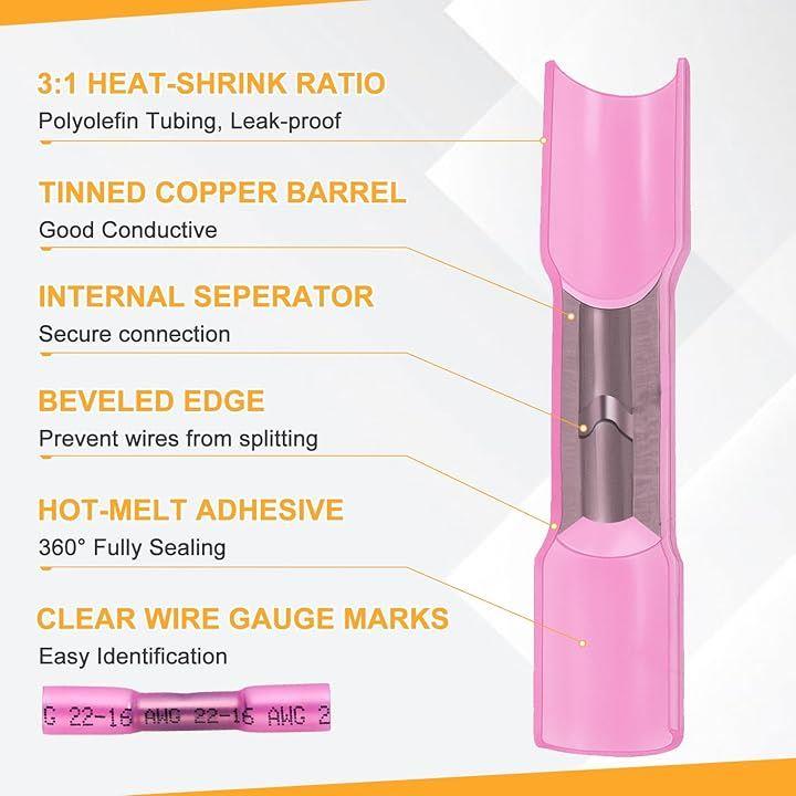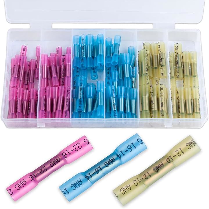熱収縮ワイヤコネクタ 防水型圧着スリーブ 絶縁圧着端子 熱収縮チューブ 100個入り 22-10 AWG 配線 接続コネクター 汎用 電線接続コネクタ 電工