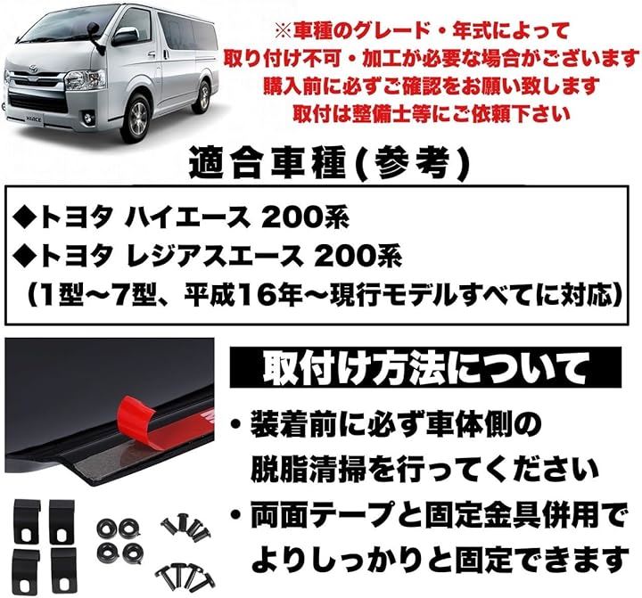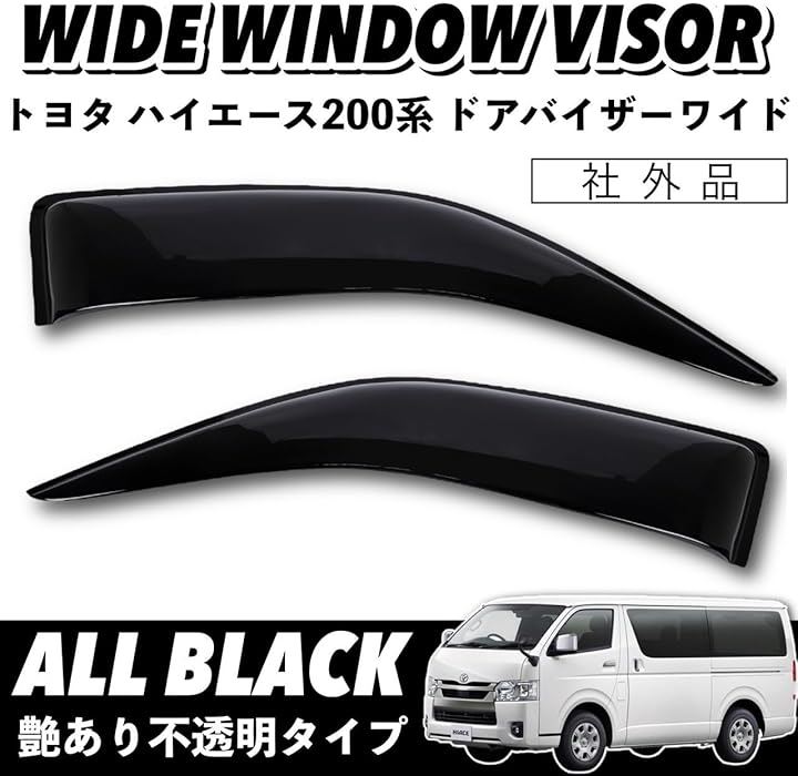 互換品 ハイエース レジアスエース 200系 ドアバイザー ワイドタイプ サイドバイザー 雨除け 1型 2型 3型 4型 5型 6型 7型 現行 左右セット カスタムパーツ 社外品