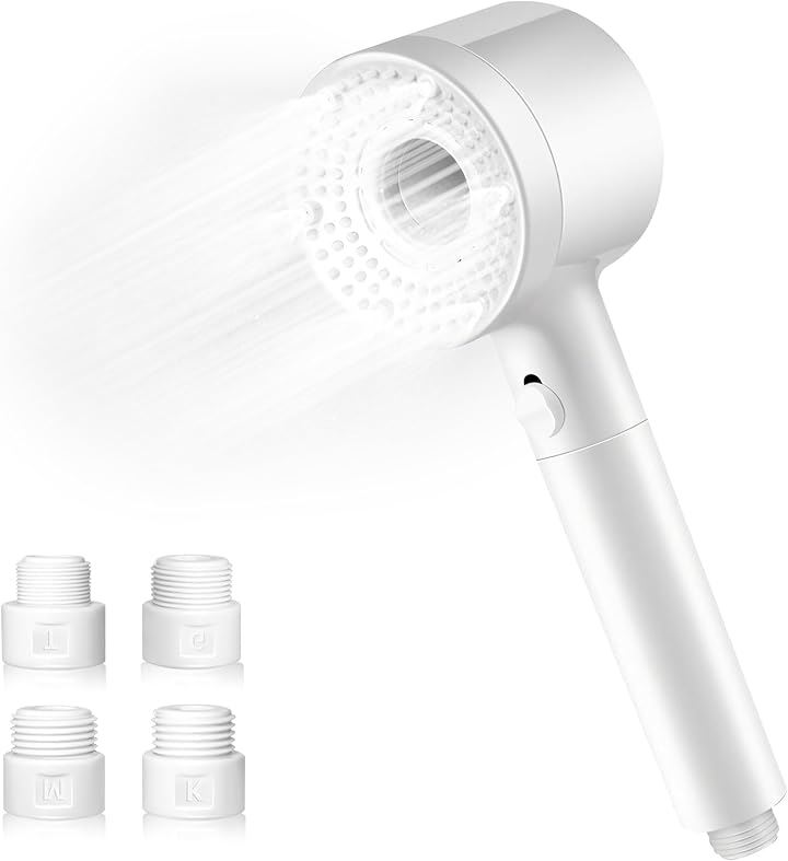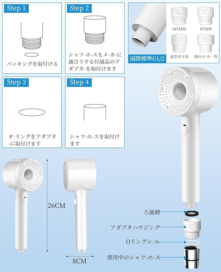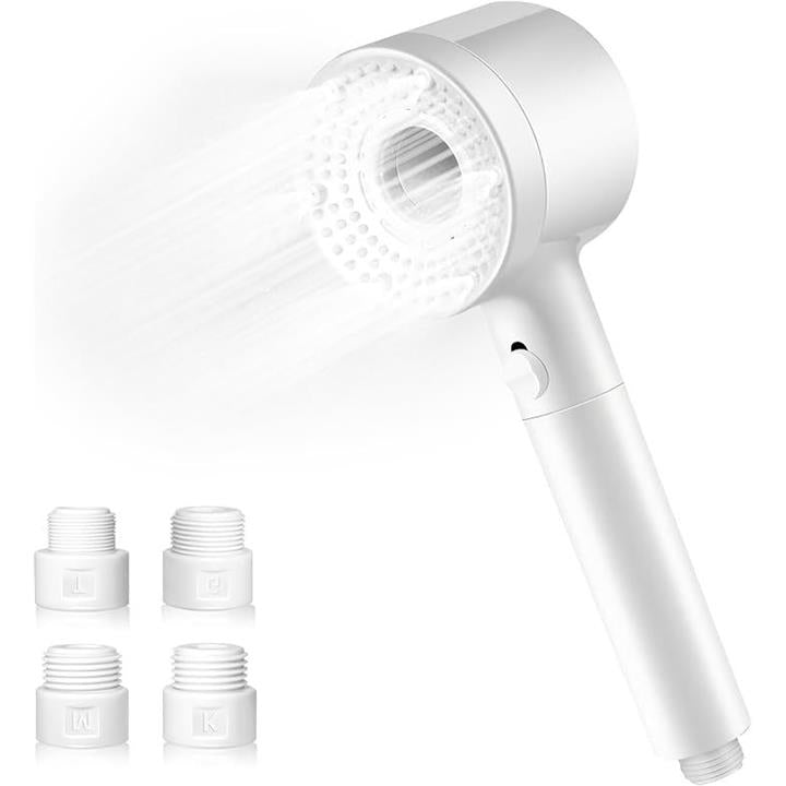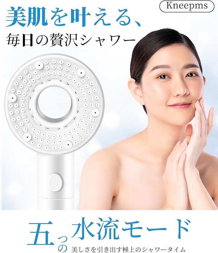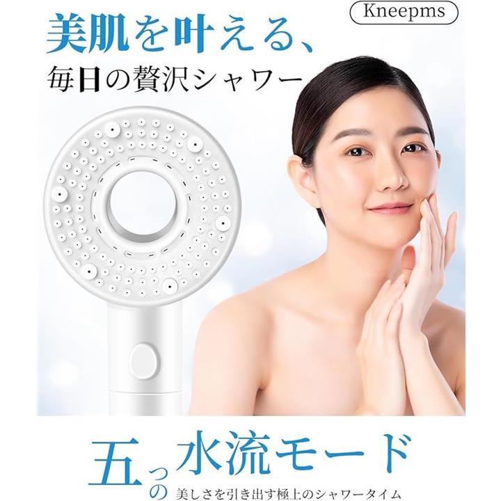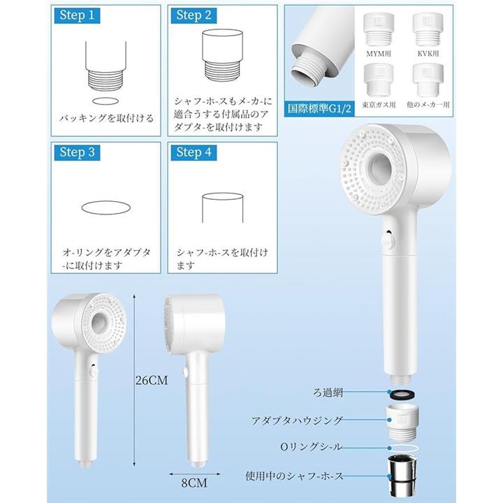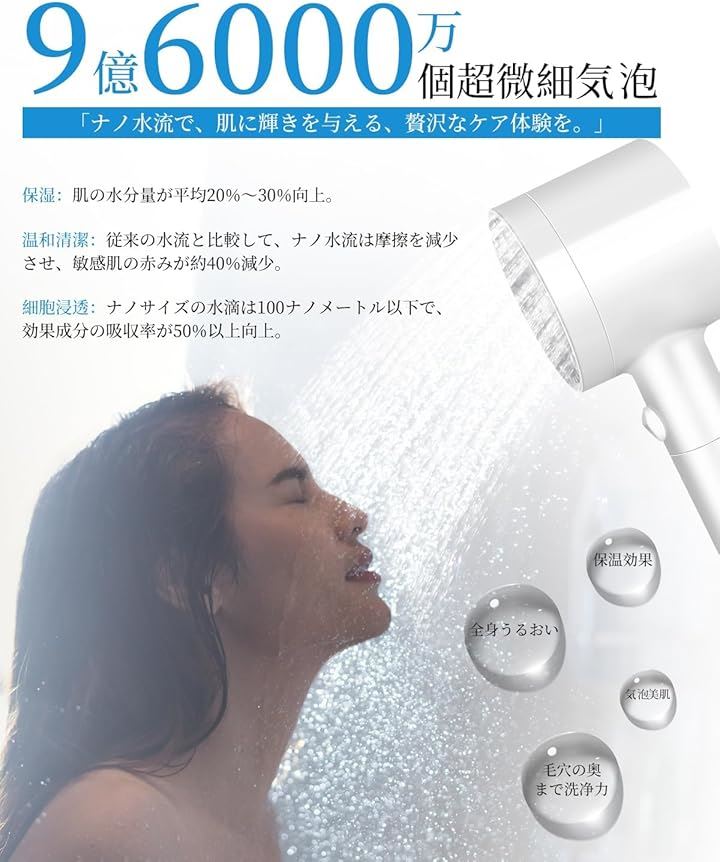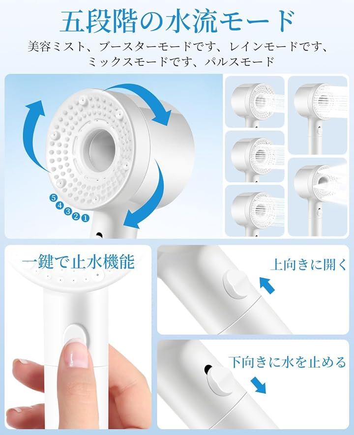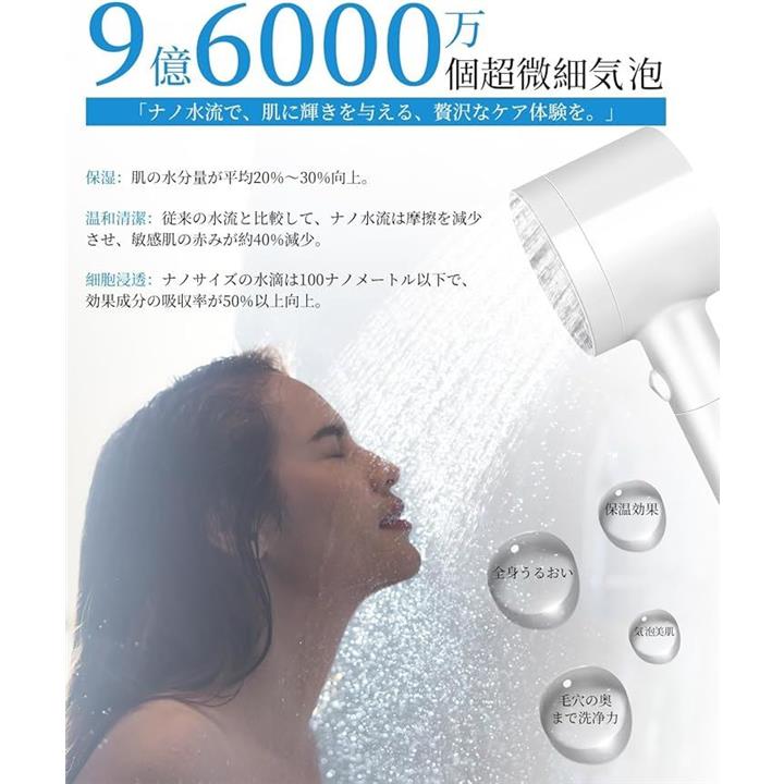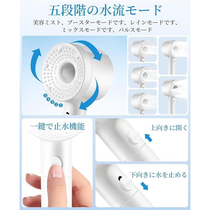 互換品シャワーヘッド 0.03mm超微細バブルで美肌ケア 5段階モード 節水 高水圧 高洗浄力 毛穴ケア/保湿 美髪促進 マイクロナノバブル 極細水流 4種アダプター付き
