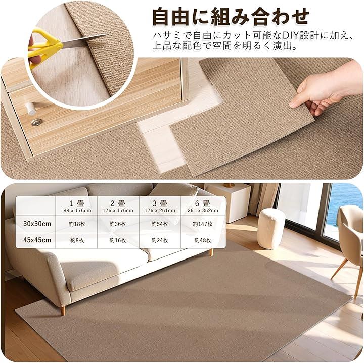 CELION タイルカーペット 撥水 フロアマット タイルマット 滑り止め 防音 フローリングカーペット 保温 洗濯機洗える お手入れ簡単 ペット用カーペット 設置簡単 DIY可能 吸着マット |
