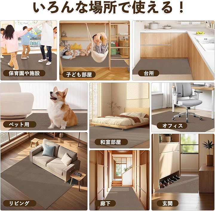 厚みを活かした防音・保温効果で、足音やフローリングの冷たさをしっかりカバー。