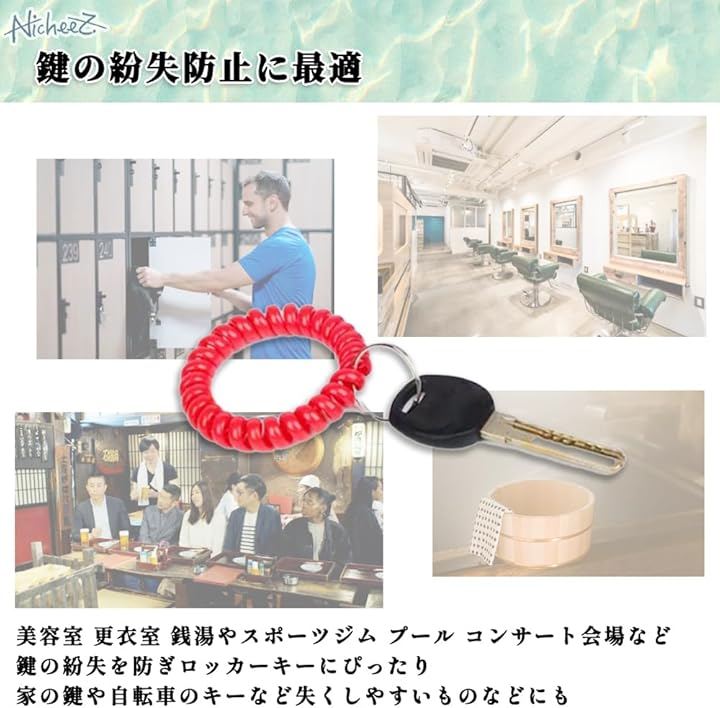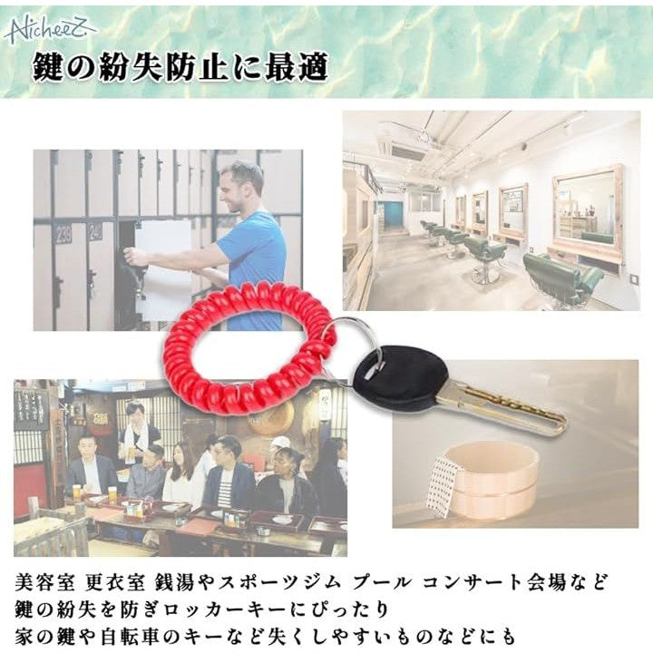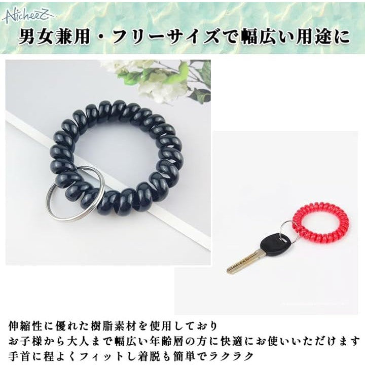 コイルバンド 伸縮 手首 ロッカーキー スプリング ホルダー 番号タグ 2色 スパイラル フィットネス プール サウナ サーフィン